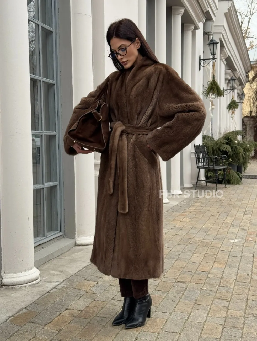 Мех данной шубы скандинавская норка, цвет коричневый. Предлагается в размерах от 42 до 50. Длина модели 115-120 см, что выгодно подчеркивает фигуру девушек. Эта модель идеально подойдет для девушек и женщин, предпочитающих роскошные натуральные меха.