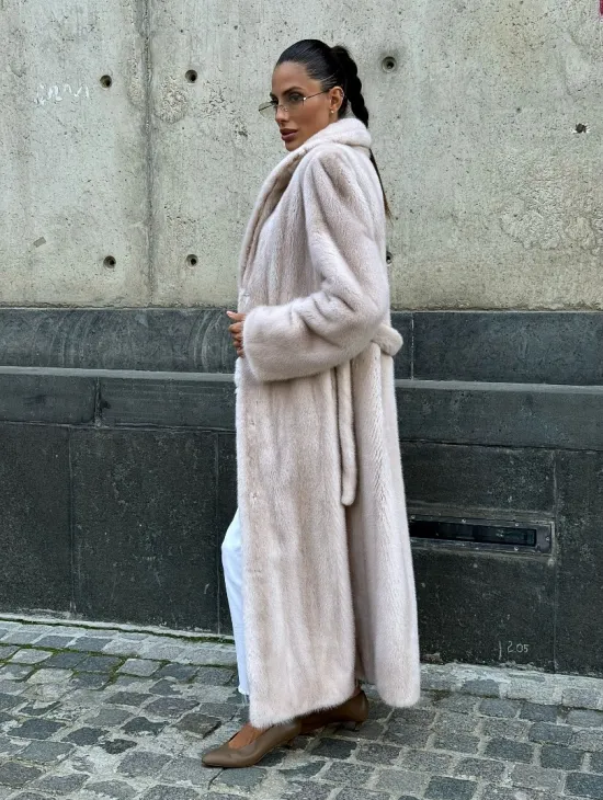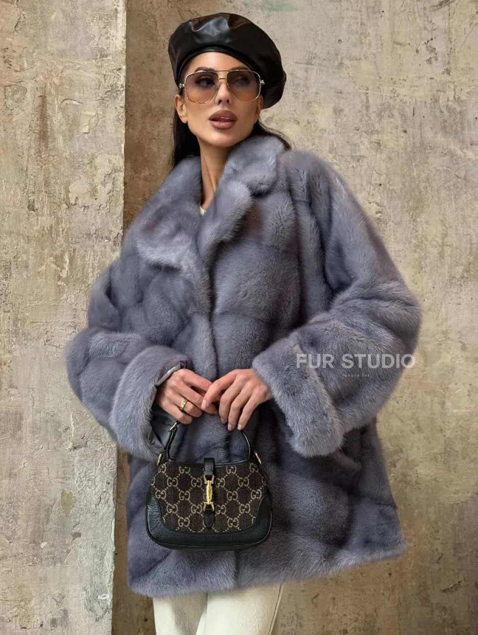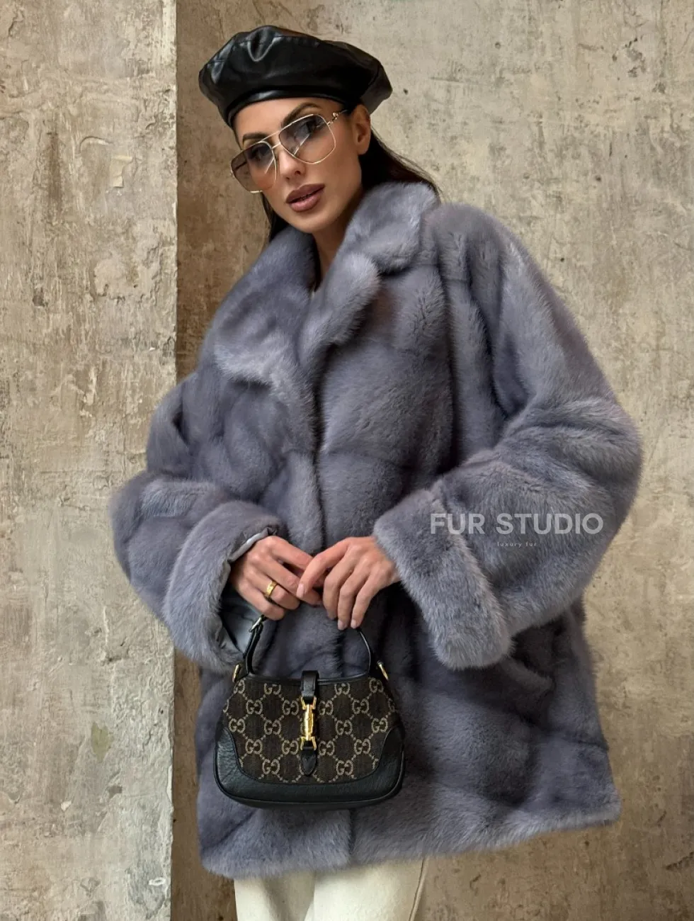 Мех данной шубы аукционная норка, цвет голубой. Предлагается в размерах от 42 до 50. Длина модели 70-75 см, что выгодно подчеркивает фигуру девушек. Эта модель идеально подойдет для девушек и женщин, предпочитающих роскошные натуральные меха.