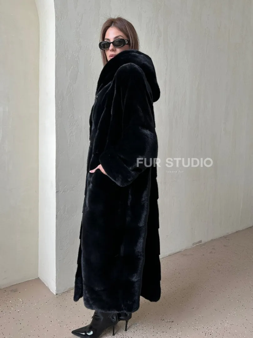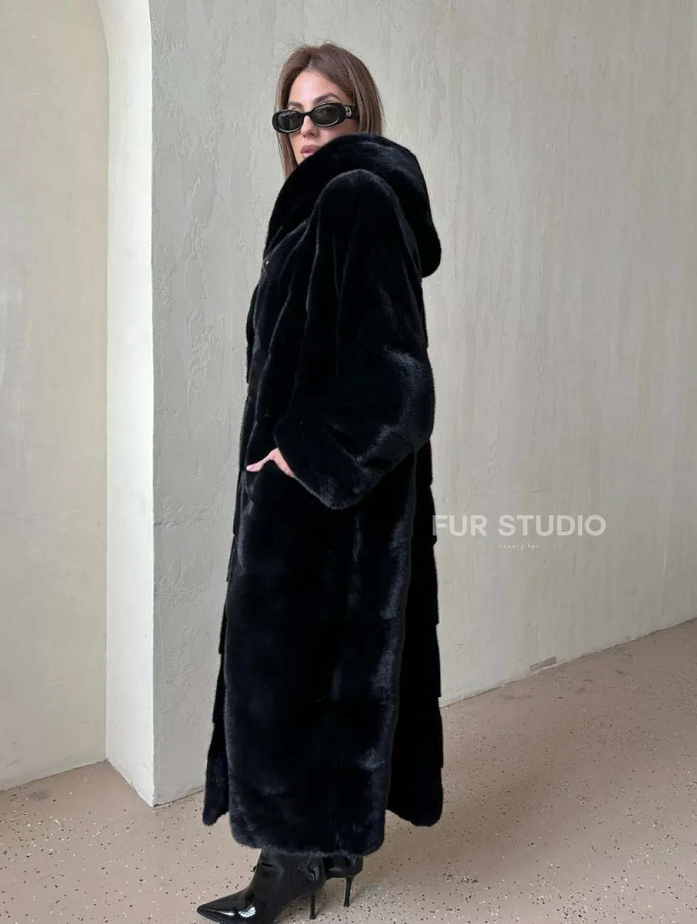 Шуба из аукционной норки VELVET, паркет с капюшоном доступна для покупки в нашем шоуруме Furs Studio в Чите. У нас так же есть доставка во все города России. Добавьте немного роскоши в свой гардероб с этой шубой, которая будет служить вам многие годы.