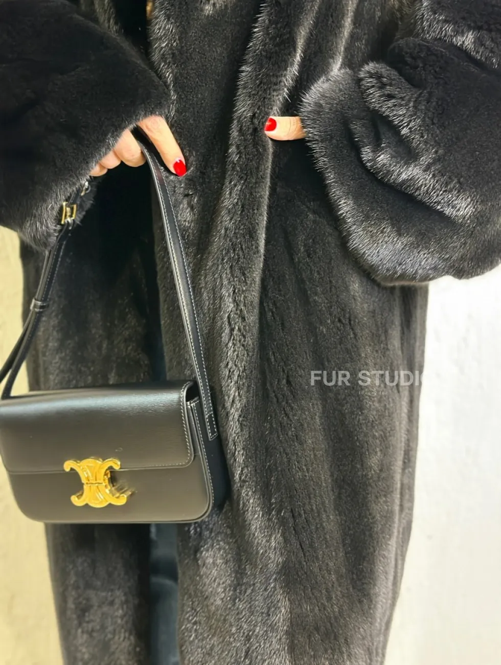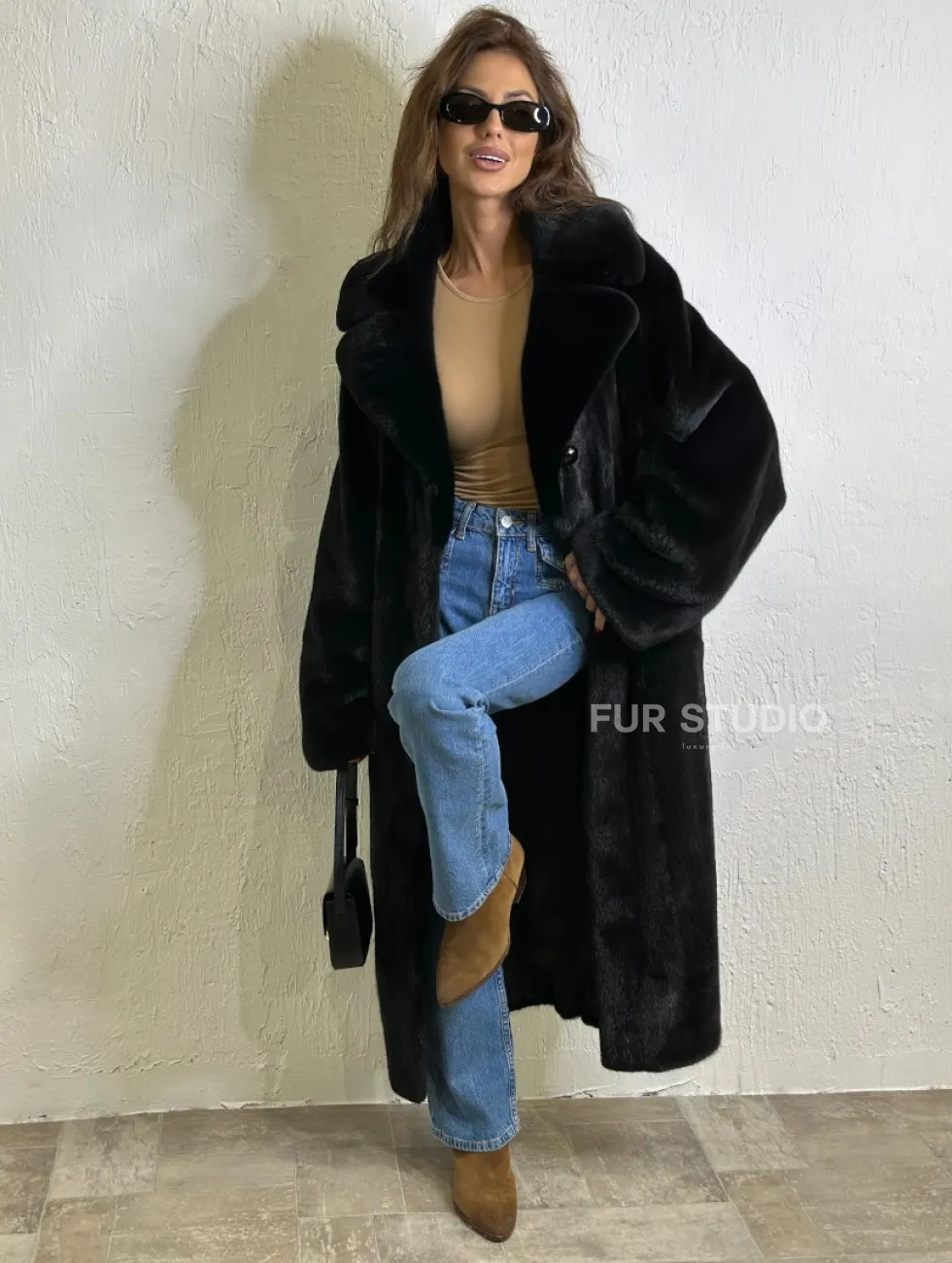 Мех данной шубы норка Blackglama , цвет черный. Предлагается в размерах от 42 до 50. Длина модели 115-120 см, что выгодно подчеркивает фигуру девушек. Эта модель идеально подойдет для девушек и женщин, предпочитающих роскошные натуральные меха.