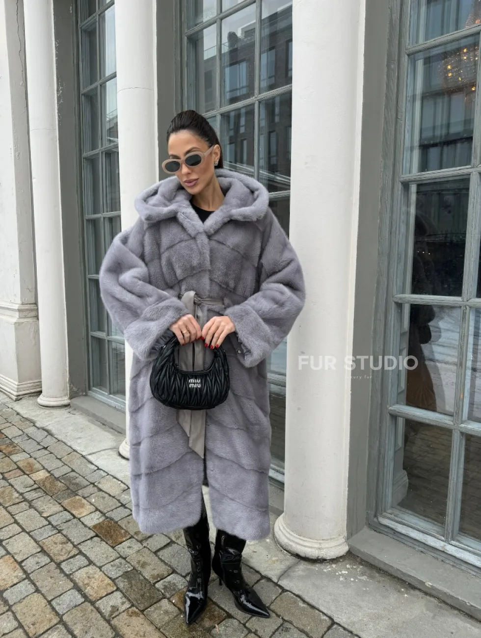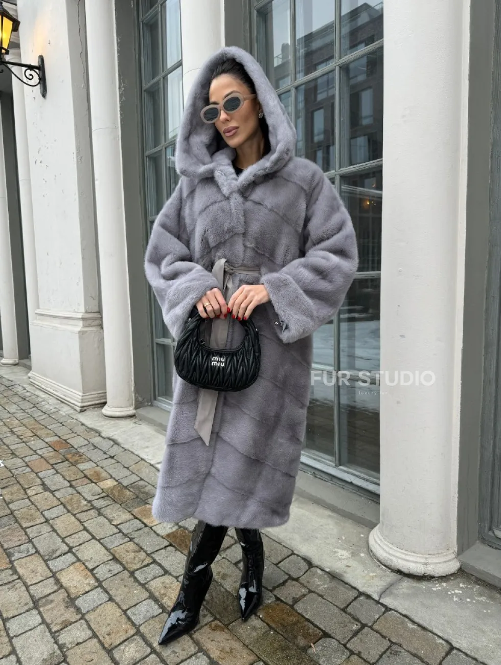 Норка кимоно паркет с капюшоном - цвет серый сапфир доступна для покупки в нашем шоуруме Furs Studio в Чите. У нас так же есть доставка во все города России. Добавьте немного роскоши в свой гардероб с этой шубой, которая будет служить вам многие годы.