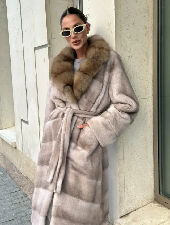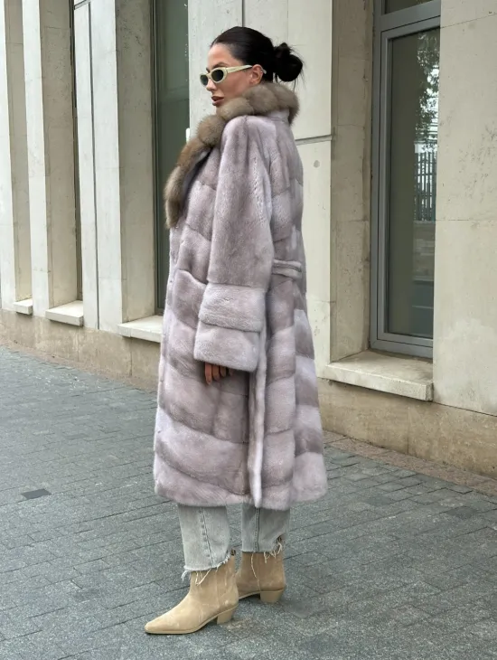 Норка поперечка летучая мышь английский воротник доступна для покупки в нашем шоуруме Furs Studio в Чите. У нас так же есть доставка во все города России. Добавьте немного роскоши в свой гардероб с этой шубой, которая будет служить вам многие годы.