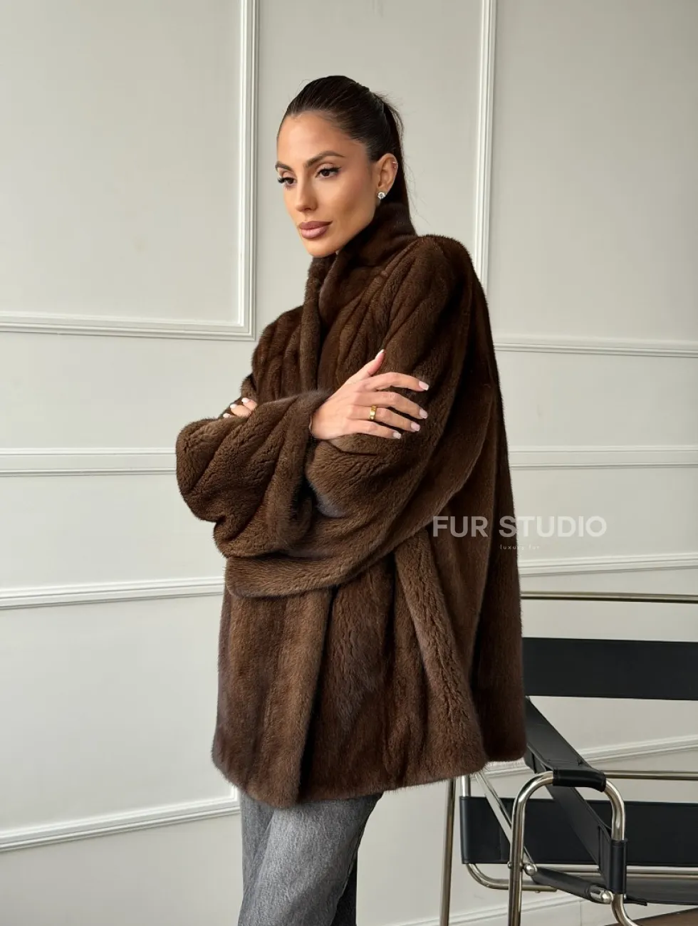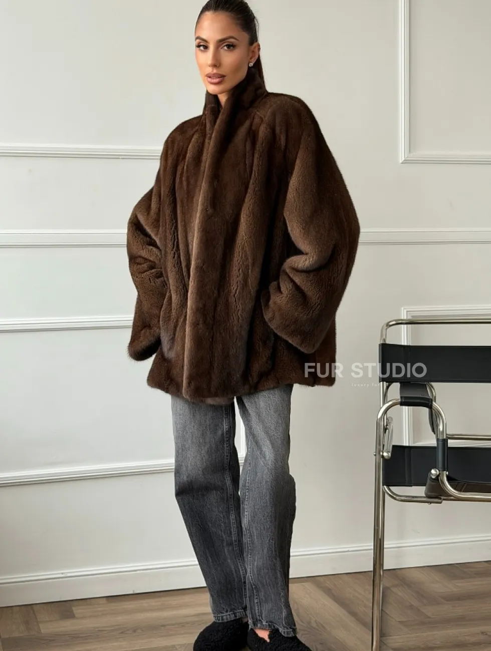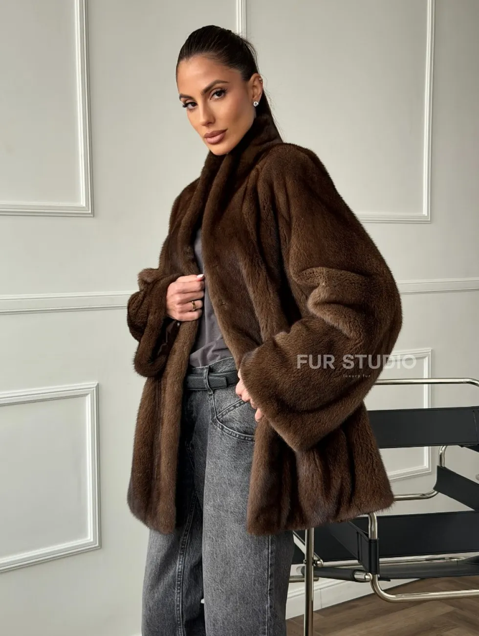 Норка жакет орех V-образный ворот доступна для покупки в нашем шоуруме Furs Studio в Чите. У нас так же есть доставка во все города России. Добавьте немного роскоши в свой гардероб с этой шубой, которая будет служить вам многие годы.
