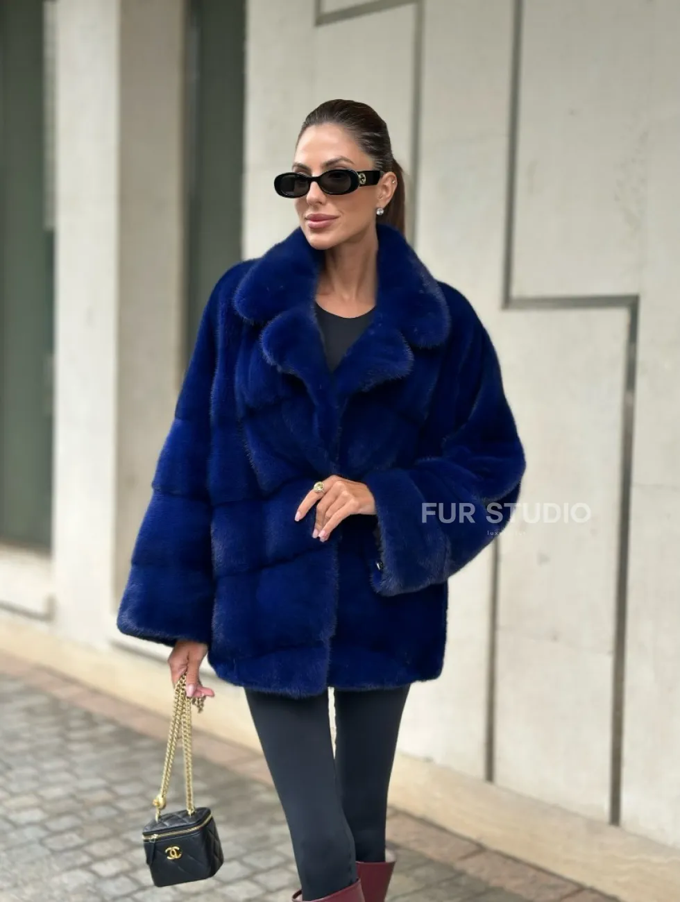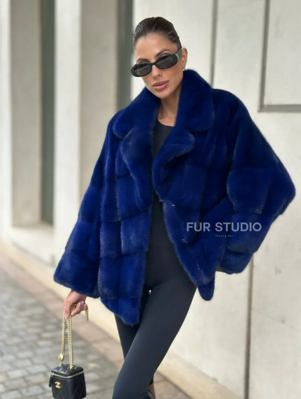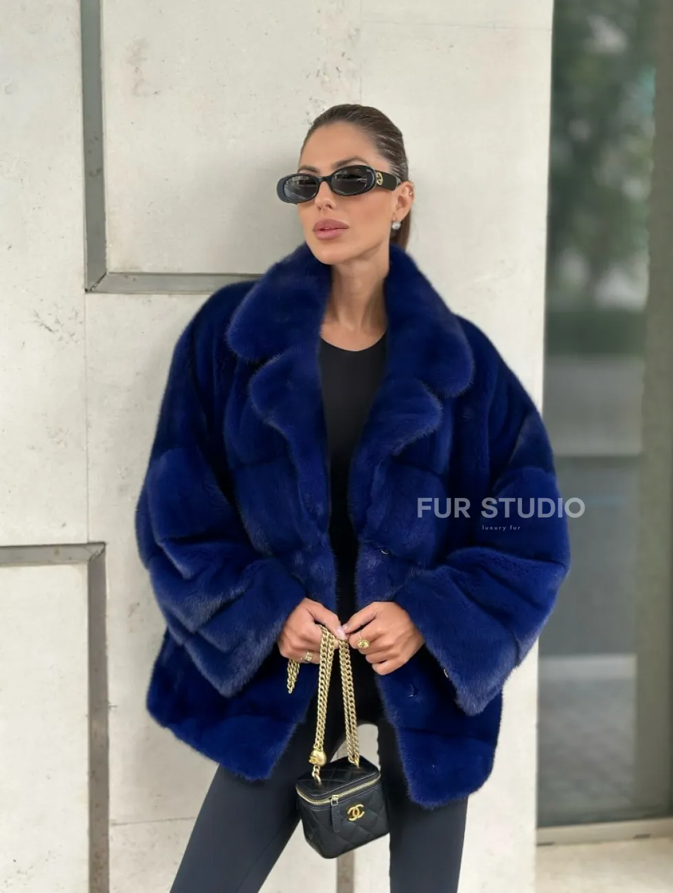 Норковая велюровая шуба - автоледи в синем цвете доступна для покупки в нашем шоуруме Furs Studio в Чите. У нас так же есть доставка во все города России. Добавьте немного роскоши в свой гардероб с этой шубой, которая будет служить вам многие годы.