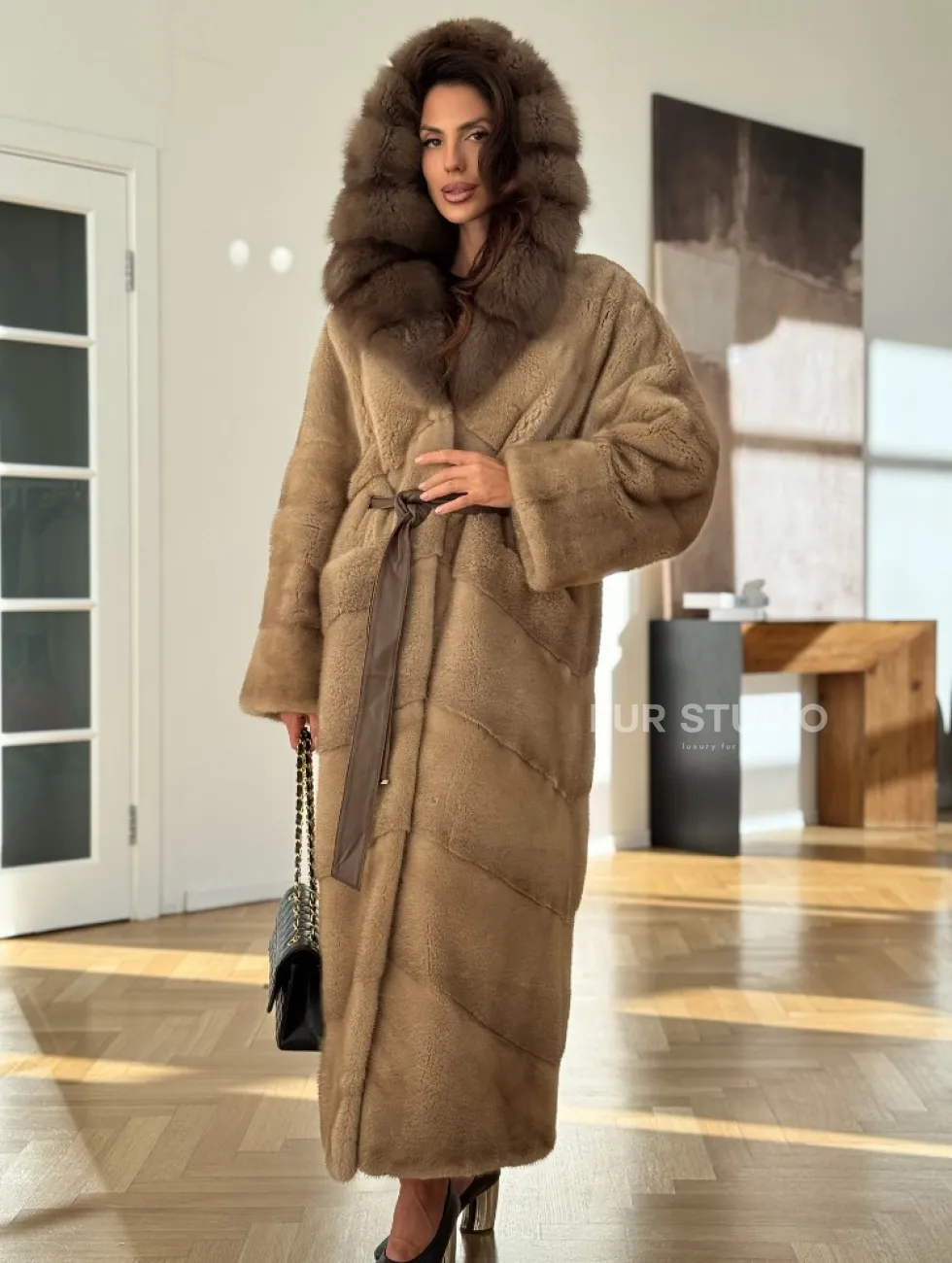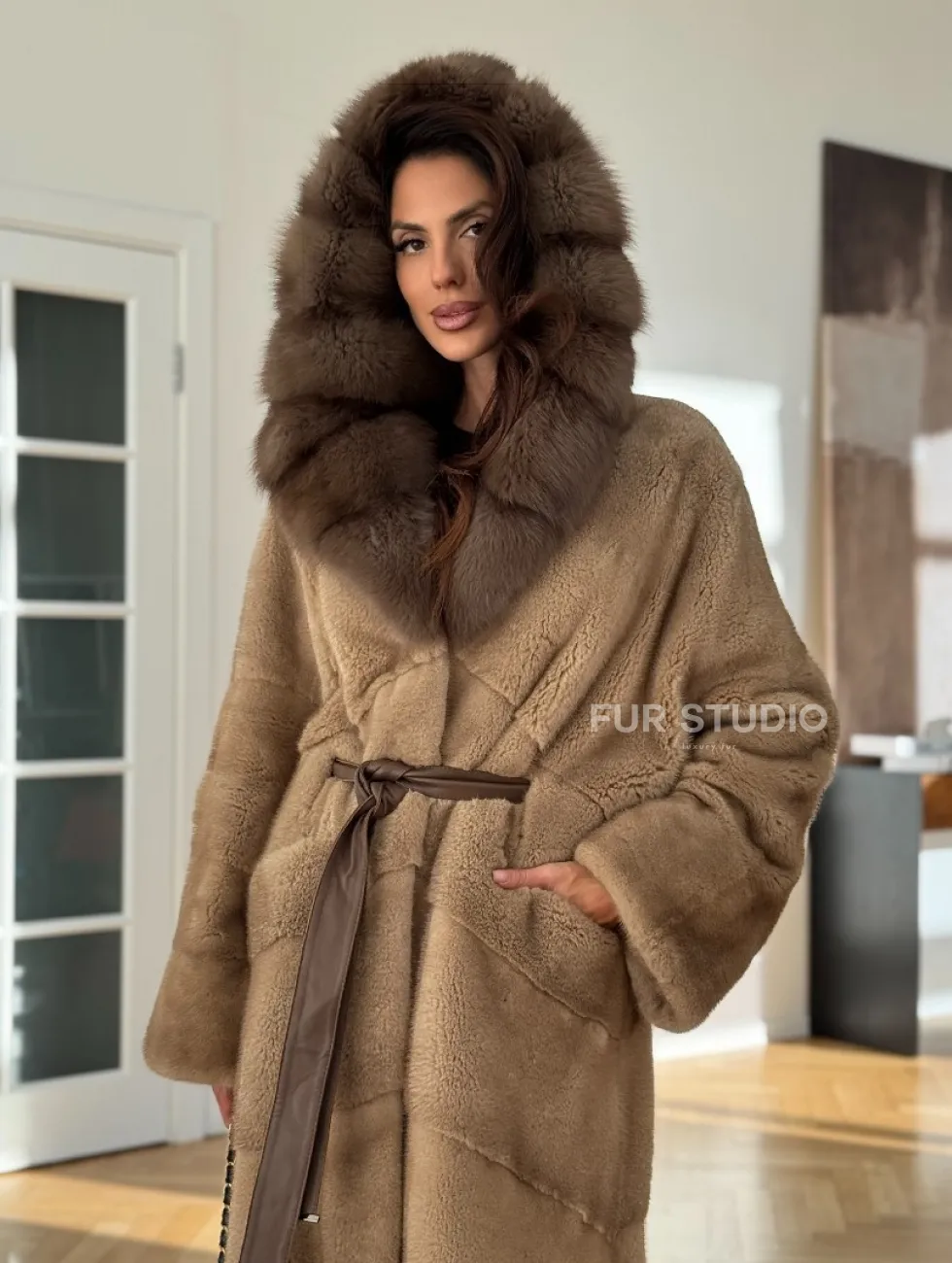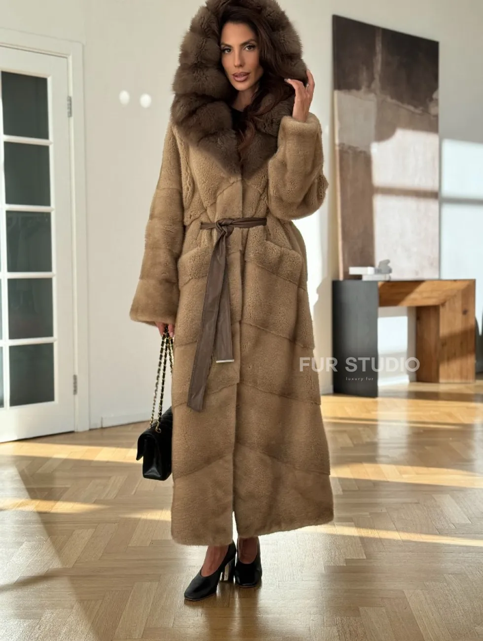 Норковая шуба бежевого цвета - капюшон куница доступна для покупки в нашем шоуруме Furs Studio в Чите. У нас так же есть доставка во все города России. Добавьте немного роскоши в свой гардероб с этой шубой, которая будет служить вам многие годы.