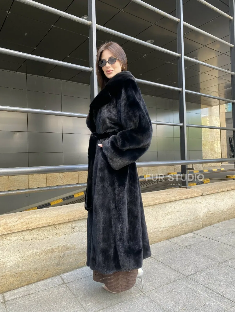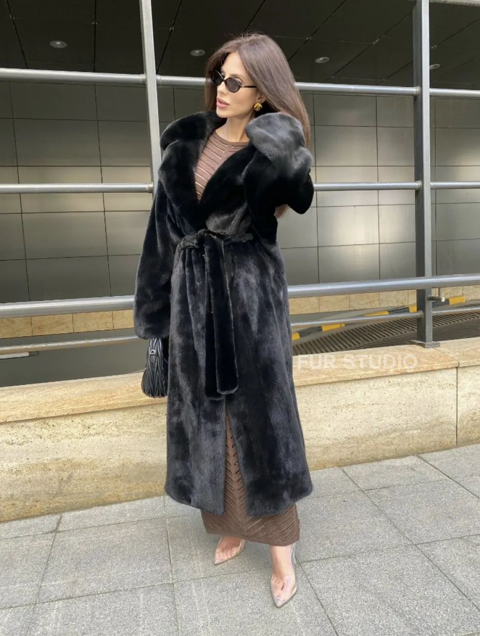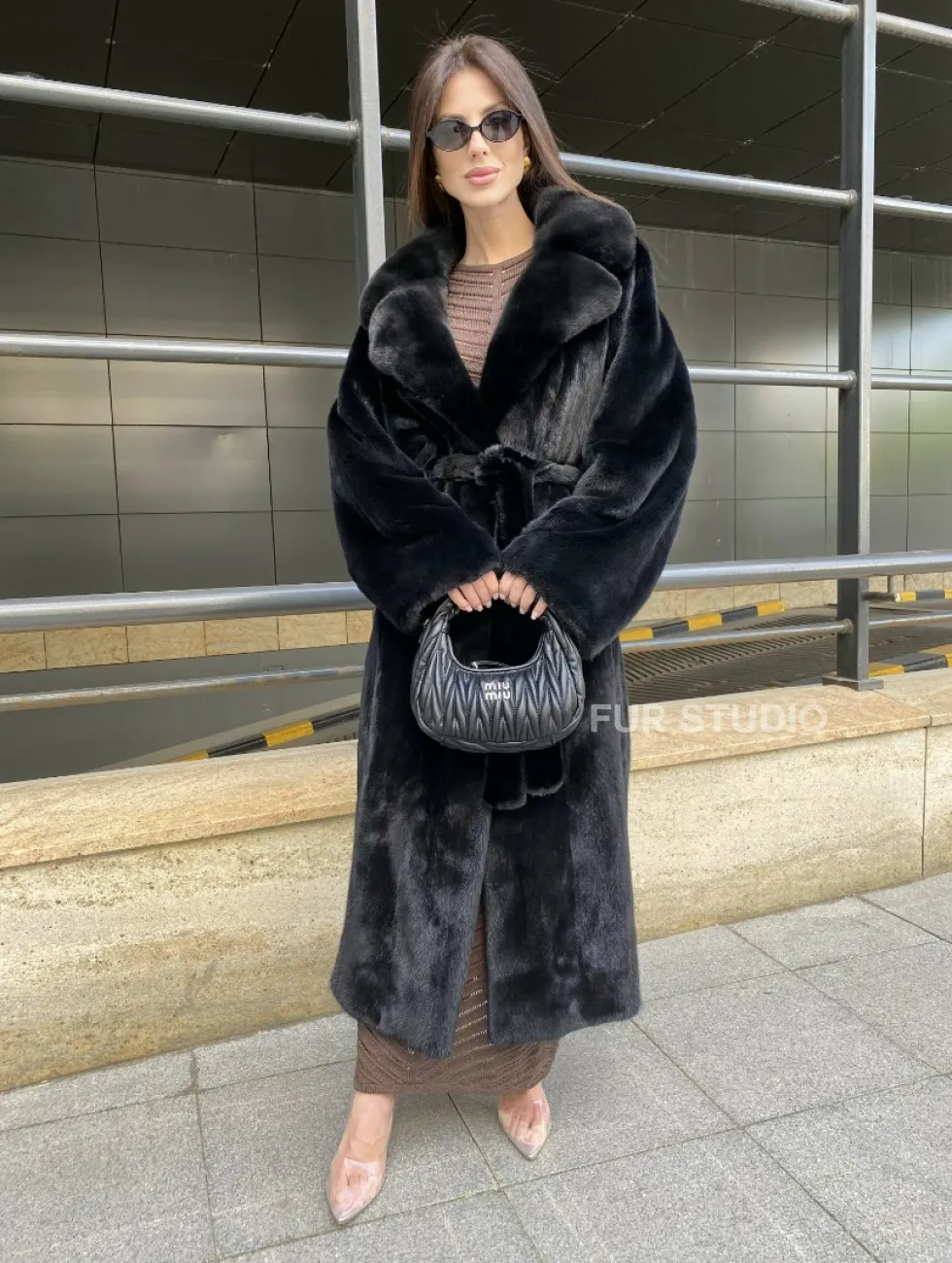 Мех данной шубы норка Blackglama , цвет черный. Предлагается в размерах от 40 до 50 от 52. Длина модели 120-125 см, что выгодно подчеркивает фигуру девушек. Эта модель идеально подойдет для девушек и женщин, предпочитающих роскошные натуральные меха.