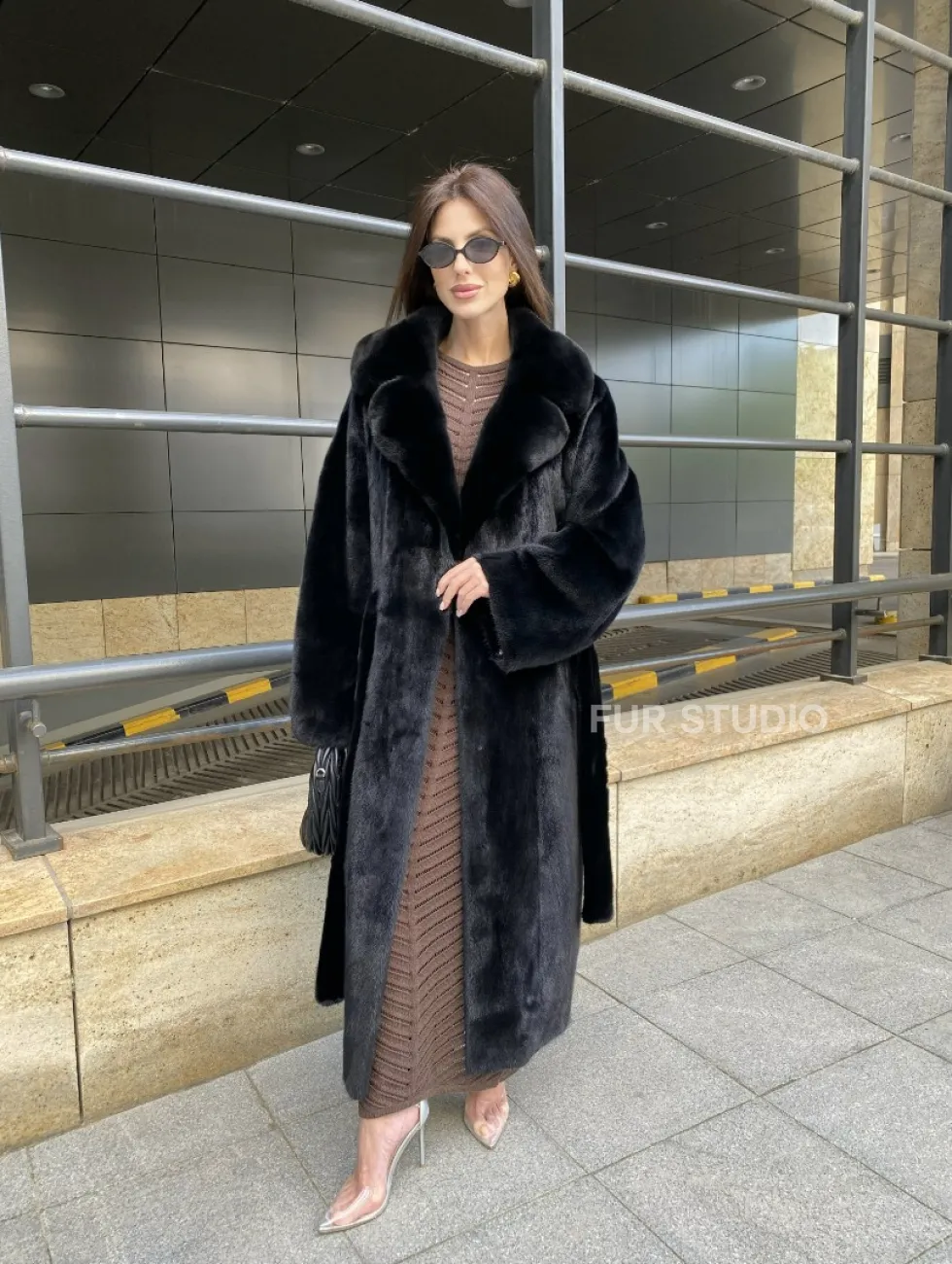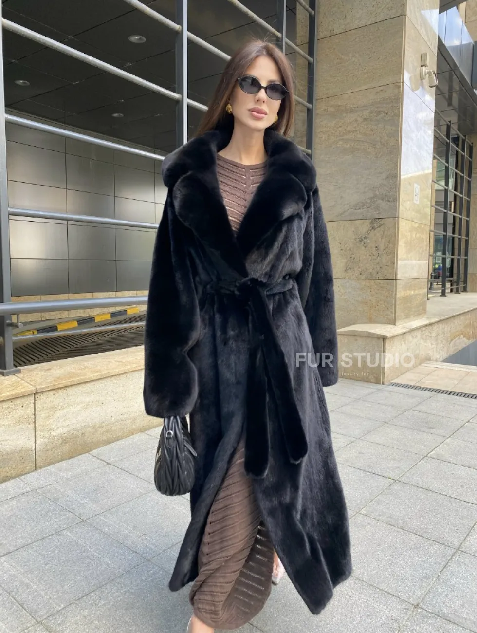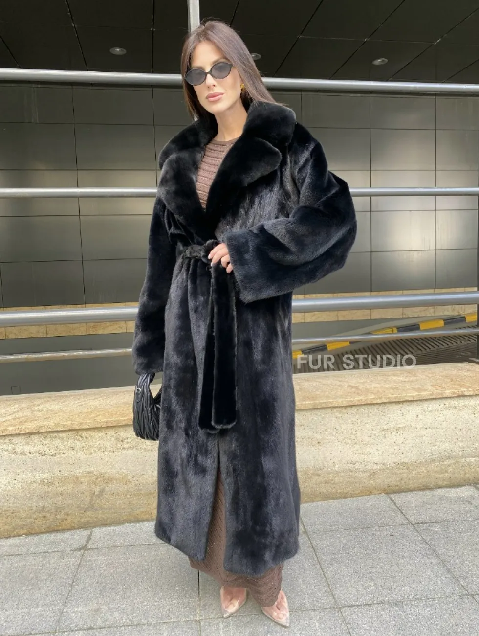 Мех данной шубы норка Blackglama , цвет черный. Предлагается в размерах от 40 до 50 от 52. Длина модели 120-125 см, что выгодно подчеркивает фигуру девушек. Эта модель идеально подойдет для девушек и женщин, предпочитающих роскошные натуральные меха.