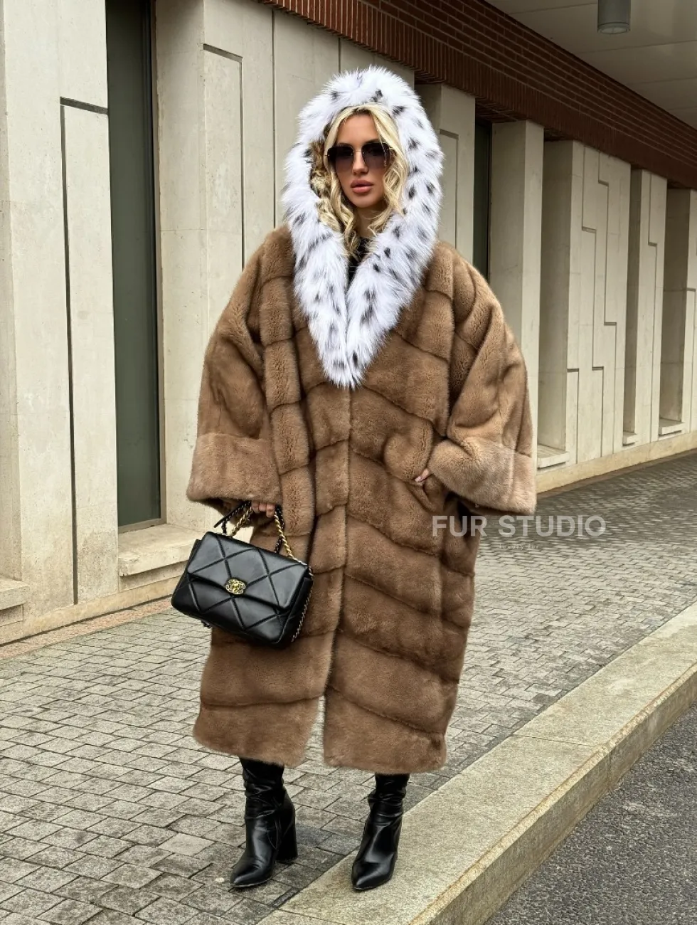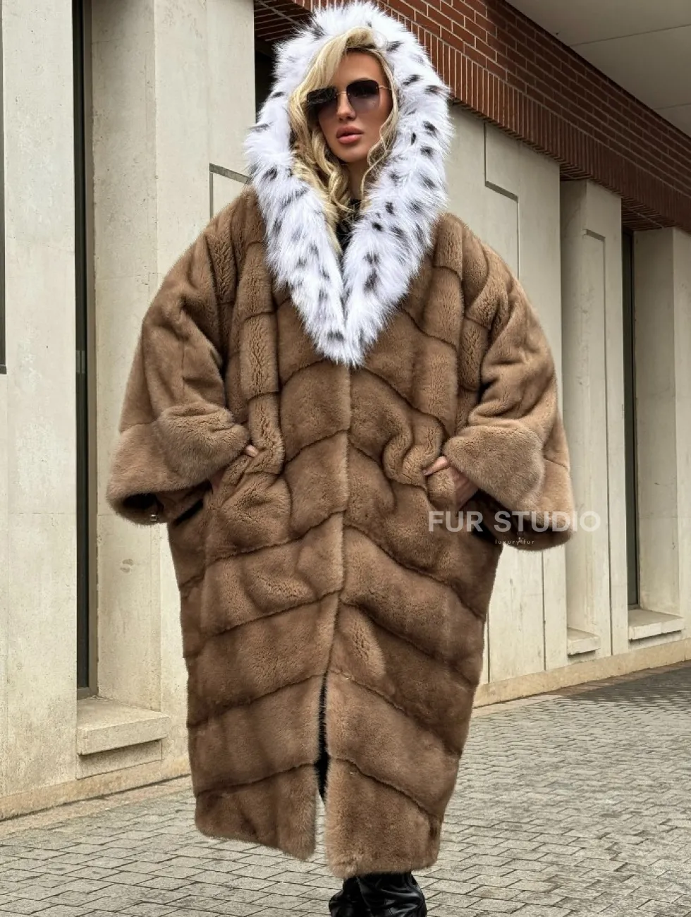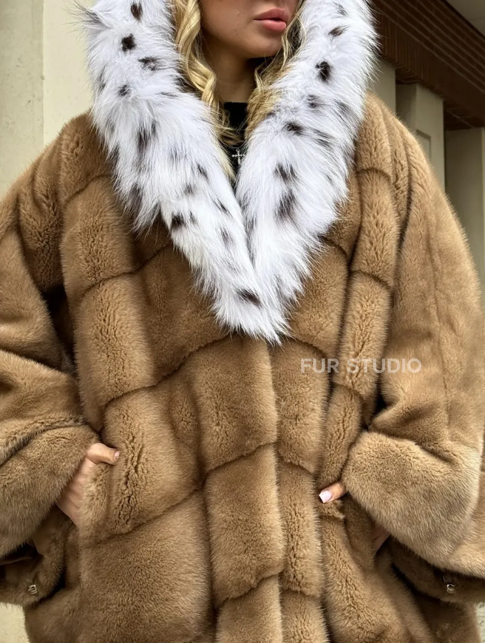 Норковая шуба больших размеров в стиле Бохо с капюшоном под рысь доступна для покупки в нашем шоуруме Furs Studio в Чите. У нас так же есть доставка во все города России. Добавьте немного роскоши в свой гардероб с этой шубой, которая будет служить вам многие годы.