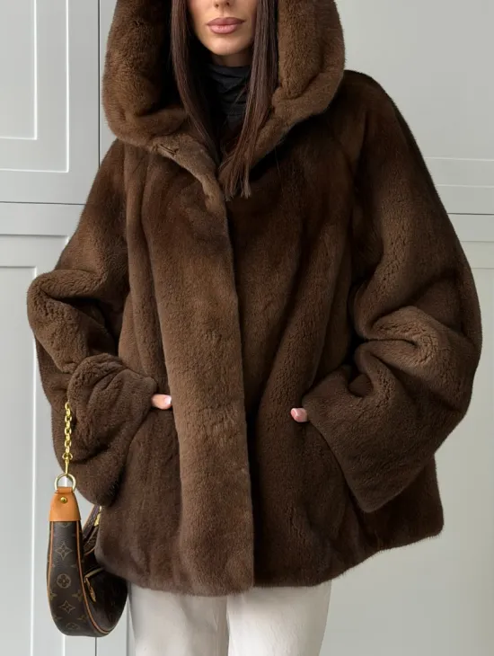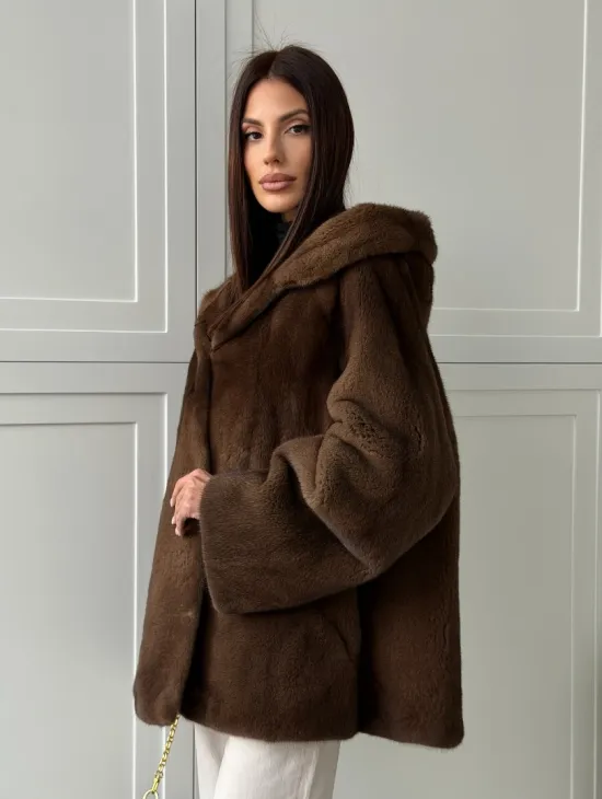 Материал выбранной модели — аукционная норка, доступна в цвете коричневый. Куртка предлагается в разнообразии размеров, от S до XL, а ее длина составляет 55-60 см, что выигрышно подчеркивает вашу фигуру. Этот вариант идеально подходит для тех, кто ценит роскошь и утонченность натуральных материалов.