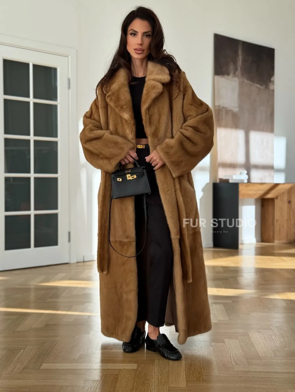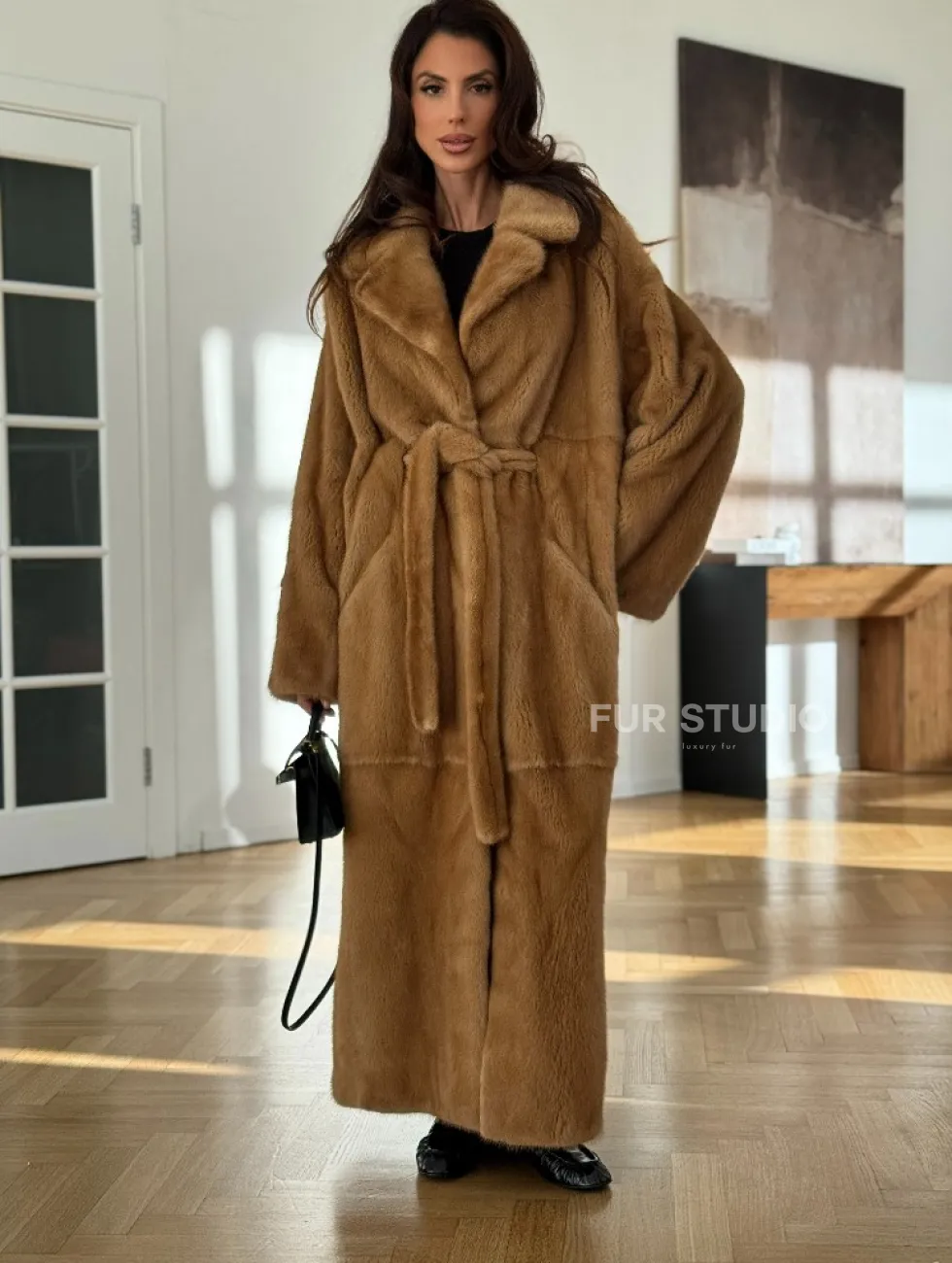 Норковая шуба - кимоно из меха норки Caramel со шлицей доступна для покупки в нашем шоуруме Furs Studio в Чите. У нас так же есть доставка во все города России. Добавьте немного роскоши в свой гардероб с этой шубой, которая будет служить вам многие годы.