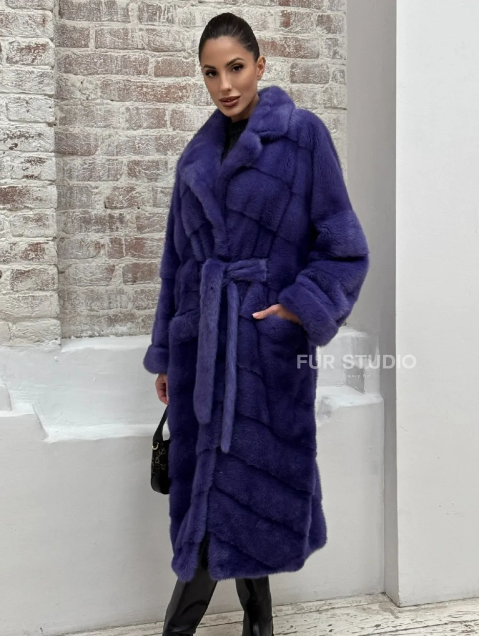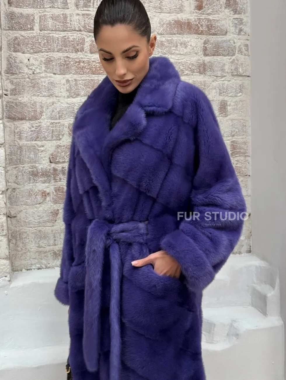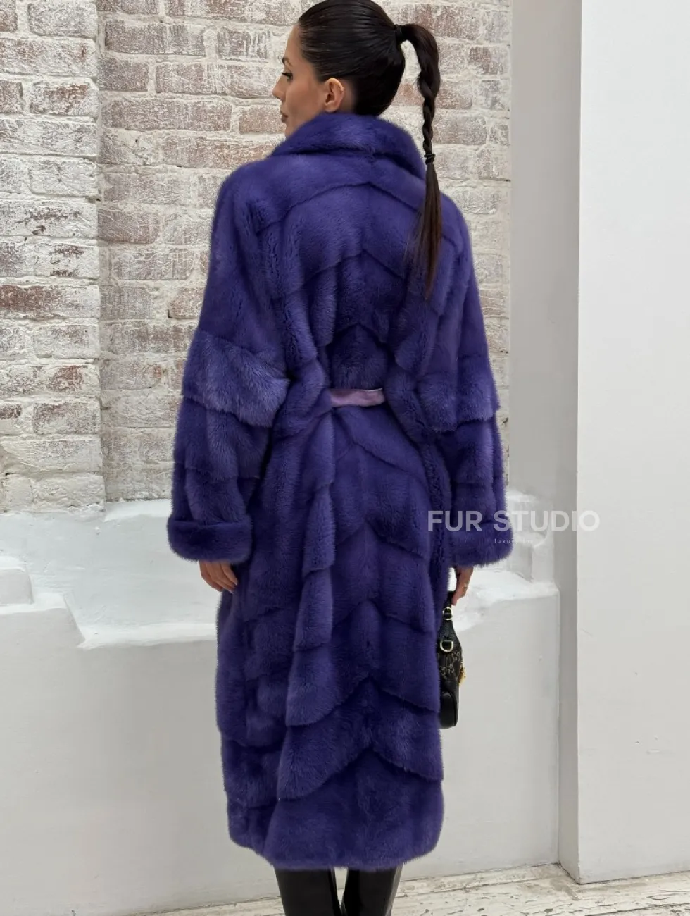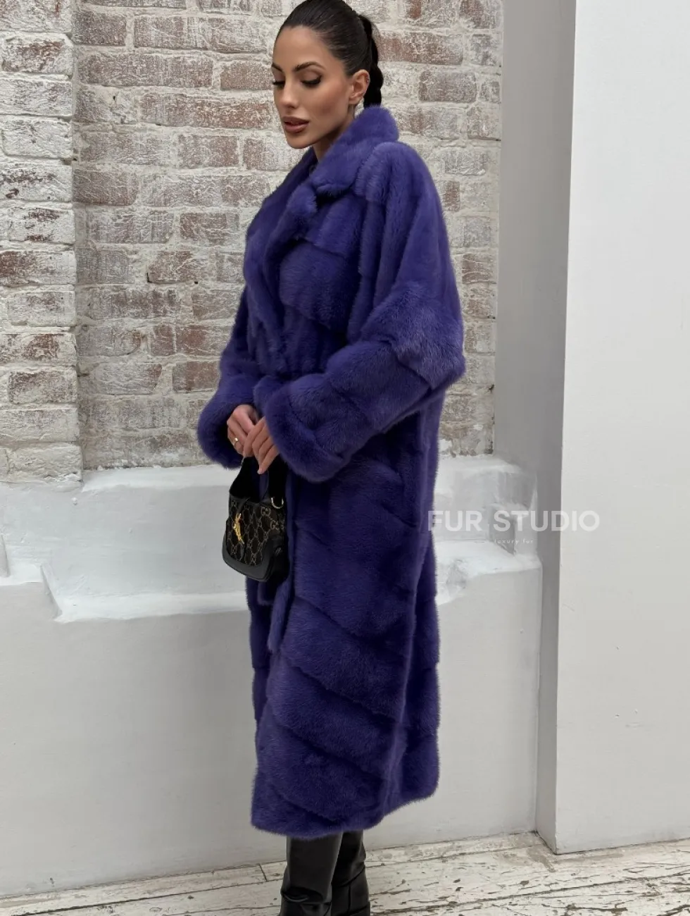 Норковая шуба кимоно с английским воротником в фиолетовом цвете доступна для покупки в нашем шоуруме Furs Studio в Чите. У нас так же есть доставка во все города России. Добавьте немного роскоши в свой гардероб с этой шубой, которая будет служить вам многие годы.