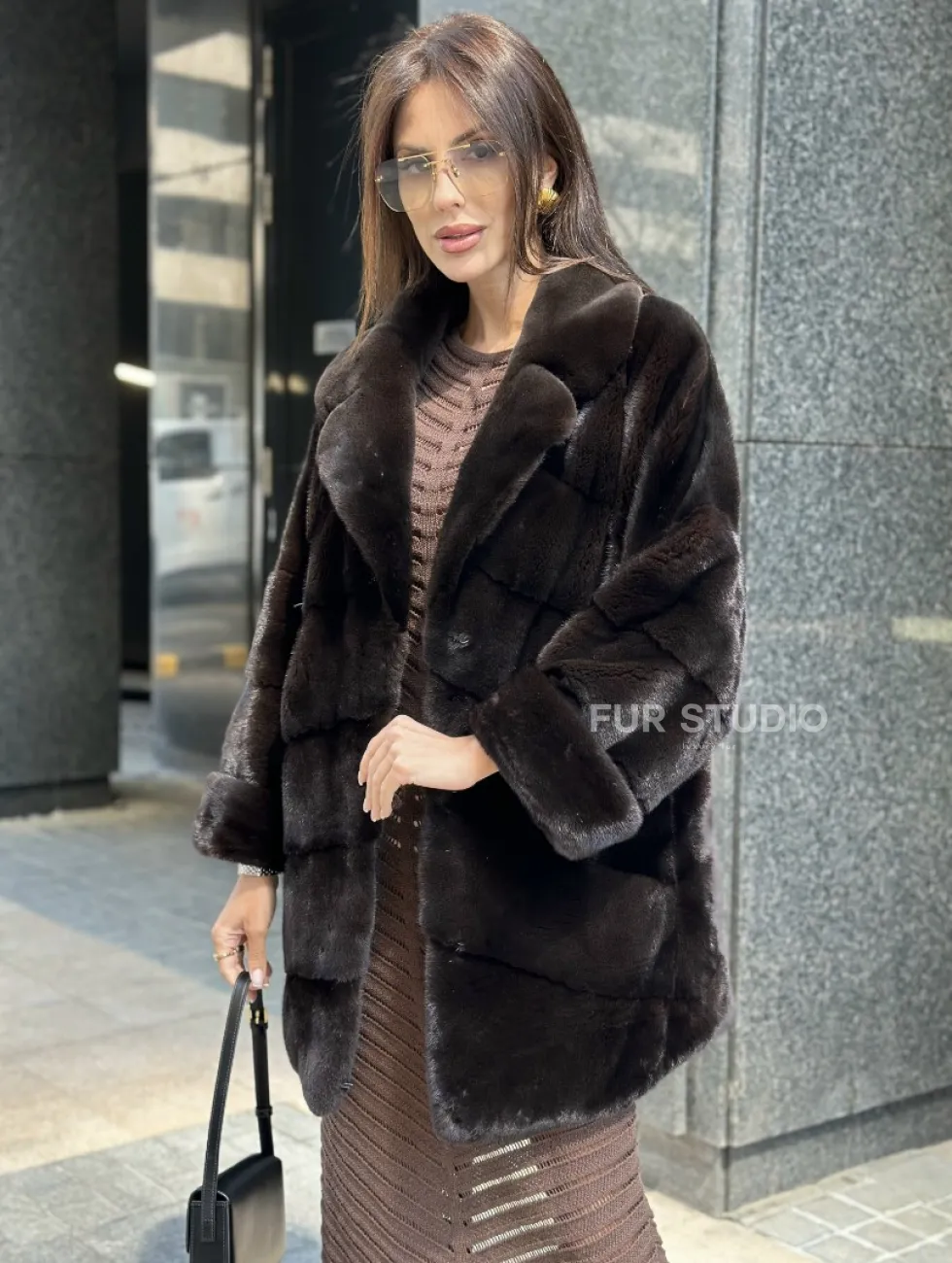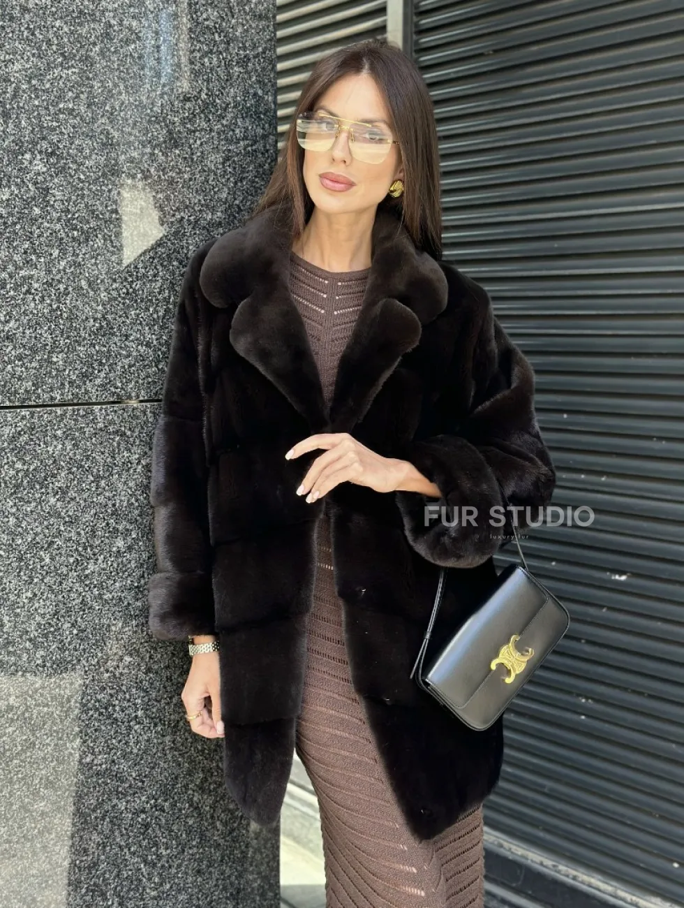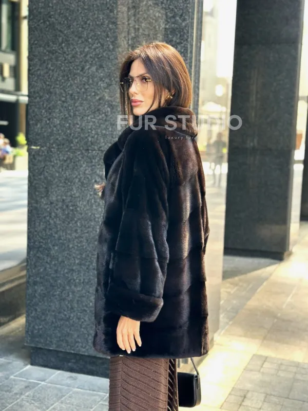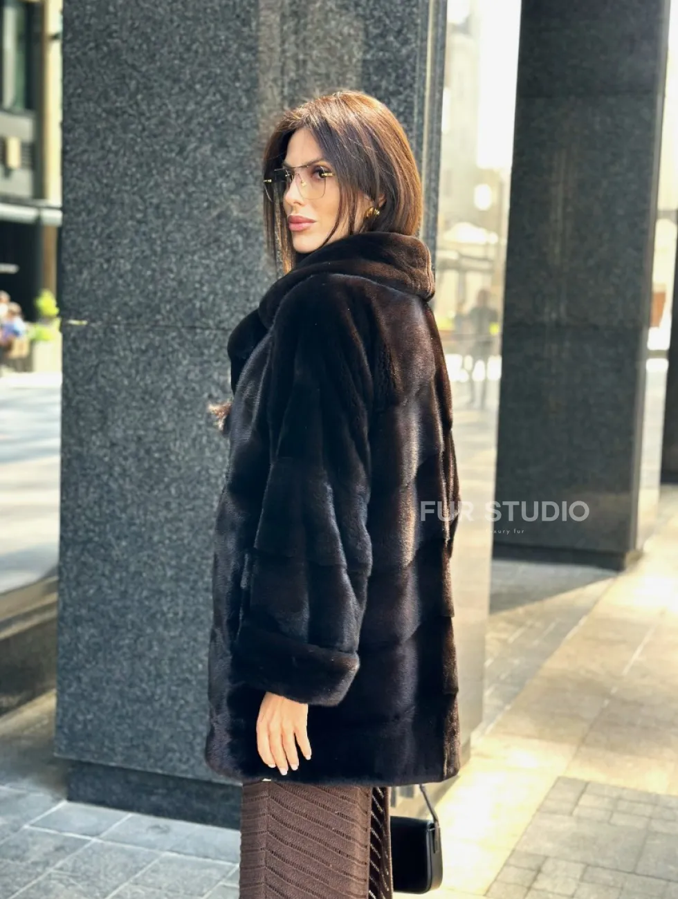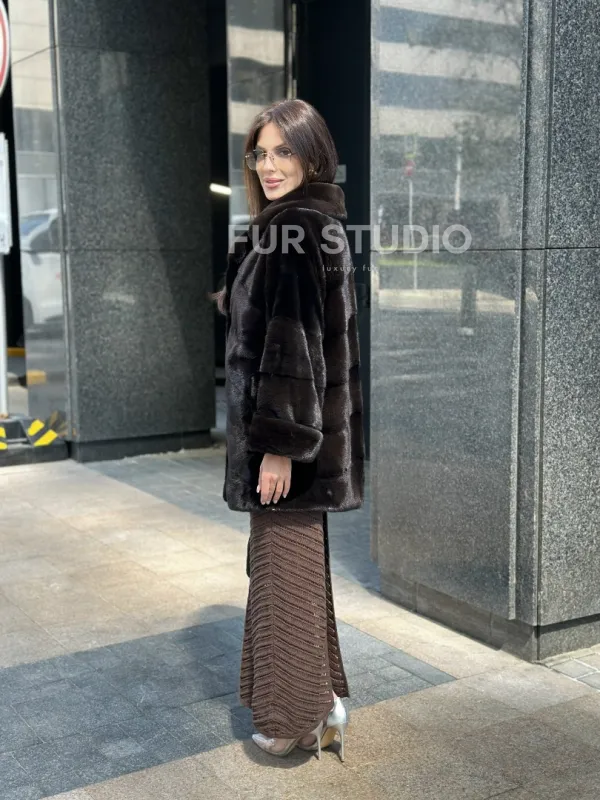 Укороченная норковая шуба в цвете шоколад доступна для покупки в нашем шоуруме Furs Studio в Чите. У нас так же есть доставка во все города России. Добавьте немного роскоши в свой гардероб с этой шубой, которая будет служить вам многие годы.