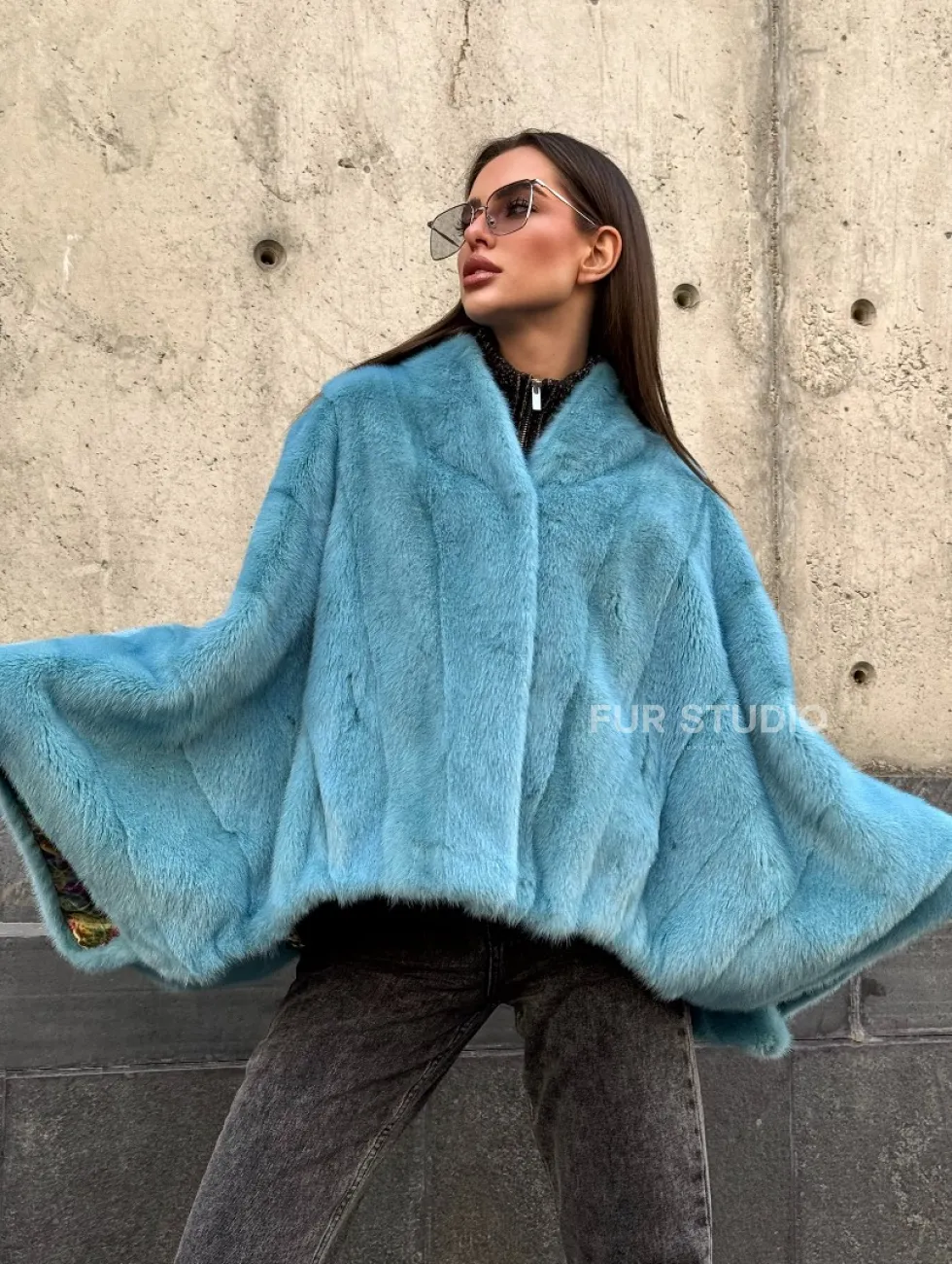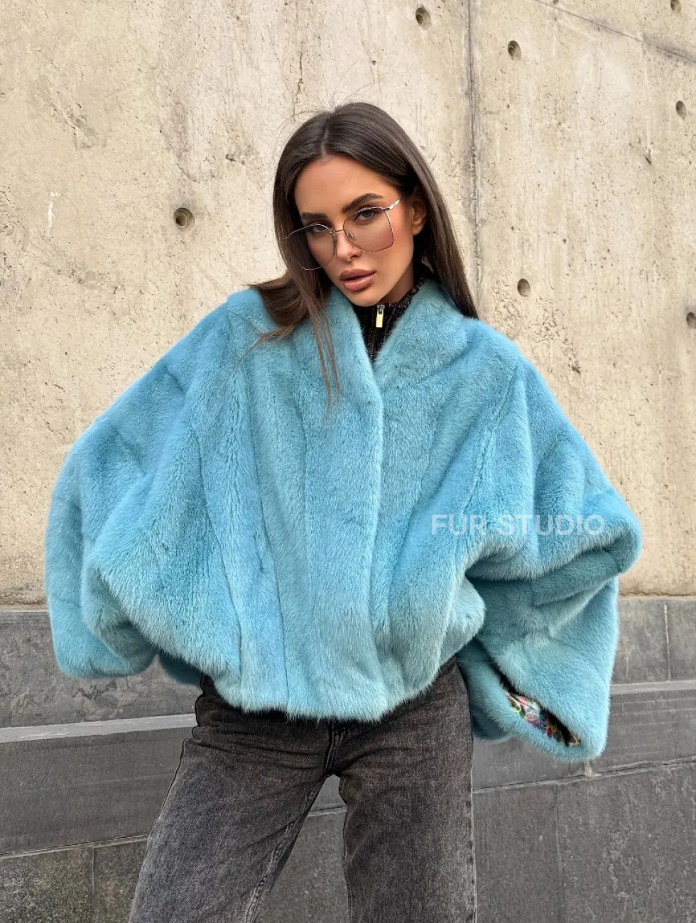 Норковая шуба летучка с V-образным воротником, цвет - тиффани доступна для покупки в нашем шоуруме Furs Studio в Чите. У нас так же есть доставка во все города России. Добавьте немного роскоши в свой гардероб с этой шубой, которая будет служить вам многие годы.