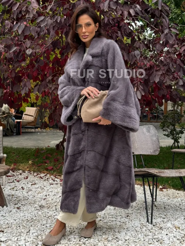 Мех данной шубы аукционная норка , цвет серый. Предлагается в размерах от oversize (42 до 68). Длина модели 120-125 см, что выгодно подчеркивает фигуру девушек. Эта модель идеально подойдет для девушек и женщин, предпочитающих роскошные натуральные меха.