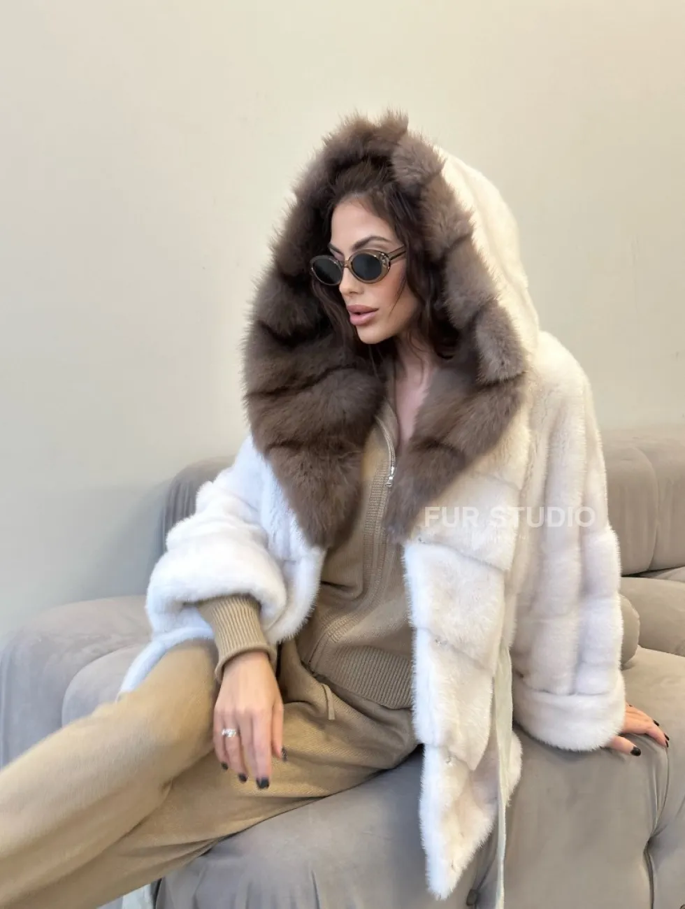 Норковая шуба - пончо с капюшоном из меха куницы доступна для покупки в нашем шоуруме Furs Studio в Чите. У нас так же есть доставка во все города России. Добавьте немного роскоши в свой гардероб с этой шубой, которая будет служить вам многие годы.