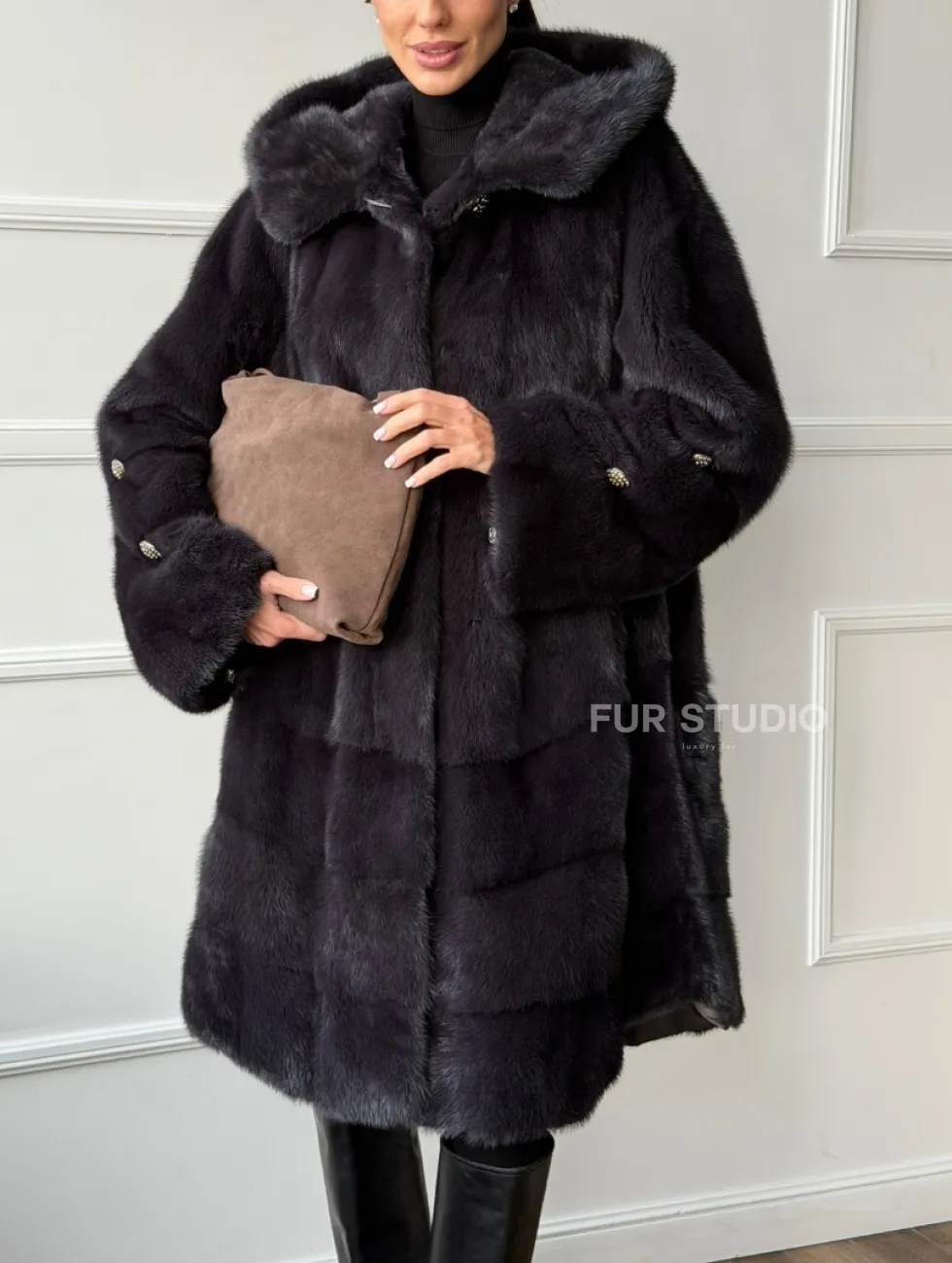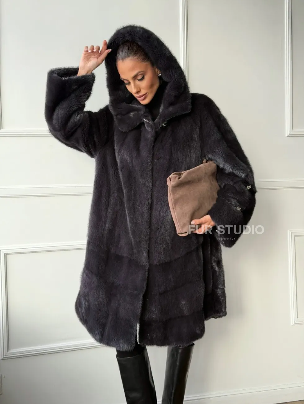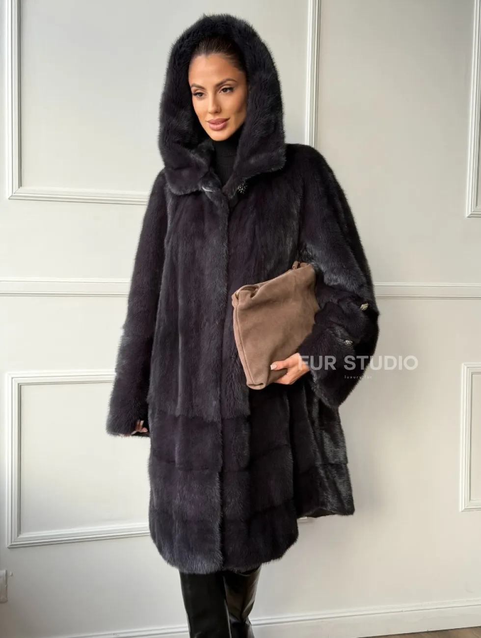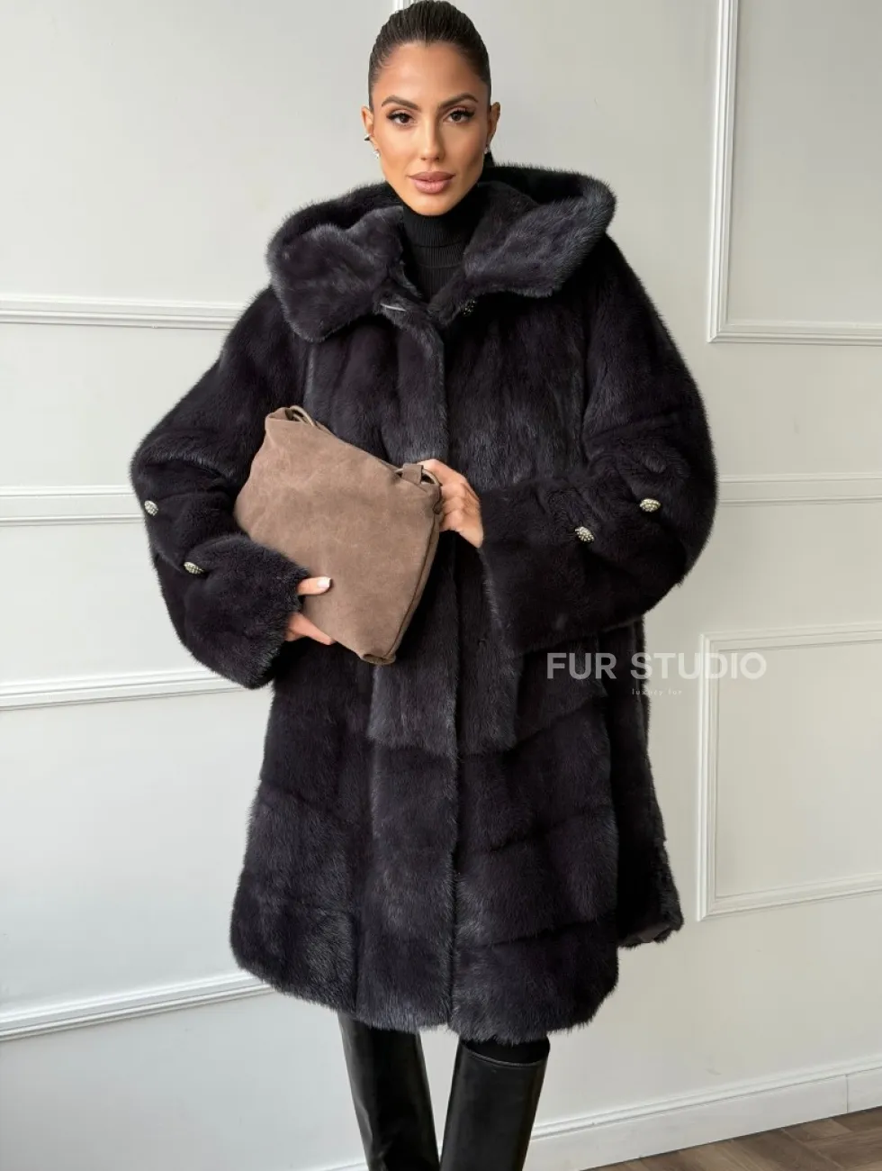 Норковая шуба с капюшоном - графит доступна для покупки в нашем шоуруме Furs Studio в Чите. У нас так же есть доставка во все города России. Добавьте немного роскоши в свой гардероб с этой шубой, которая будет служить вам многие годы.