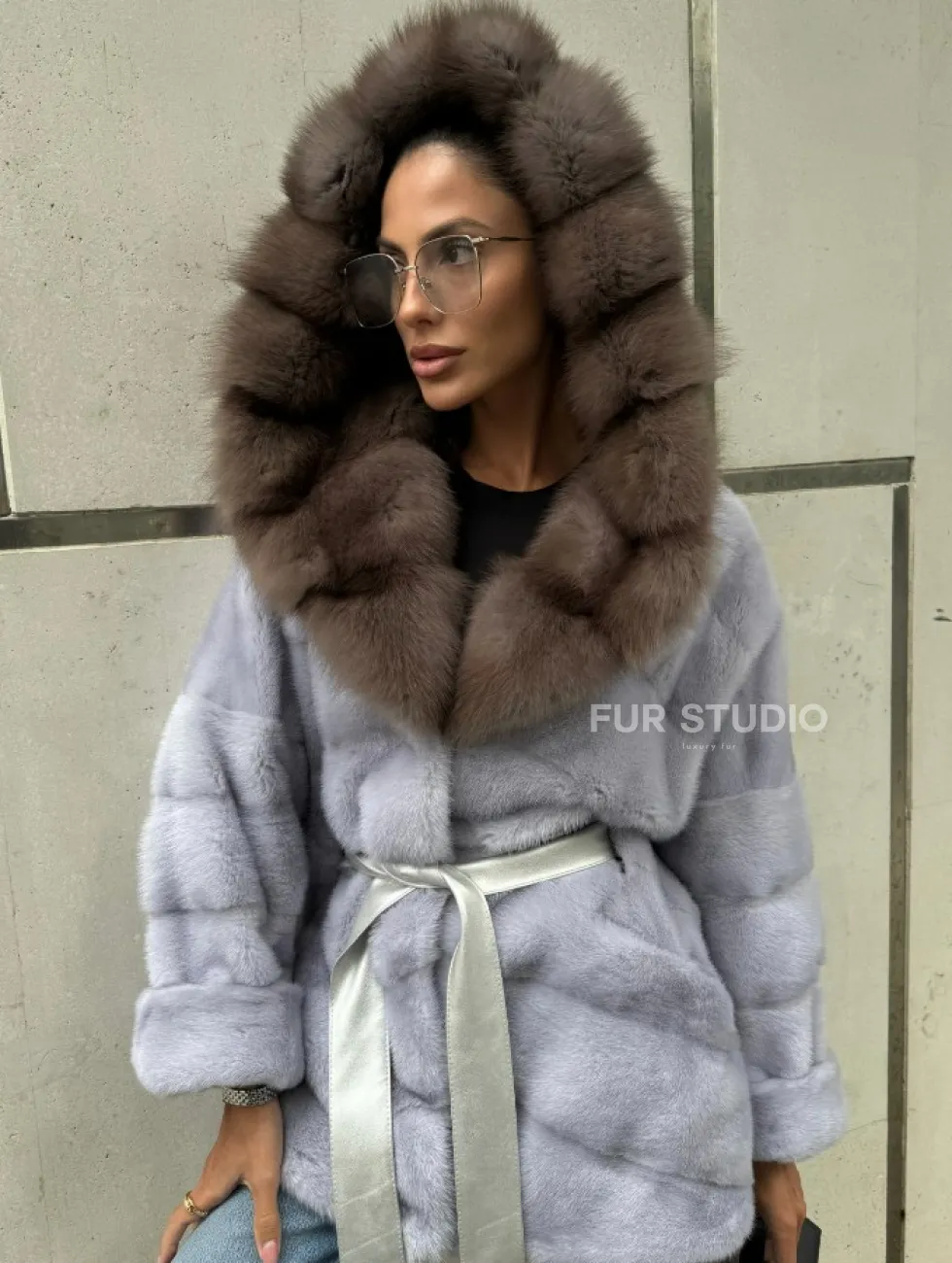 Шуба норковая с капюшоном из меха куницы - цвет голубой доступна для покупки в нашем шоуруме Furs Studio в Чите. У нас так же есть доставка во все города России. Добавьте немного роскоши в свой гардероб с этой шубой, которая будет служить вам многие годы.