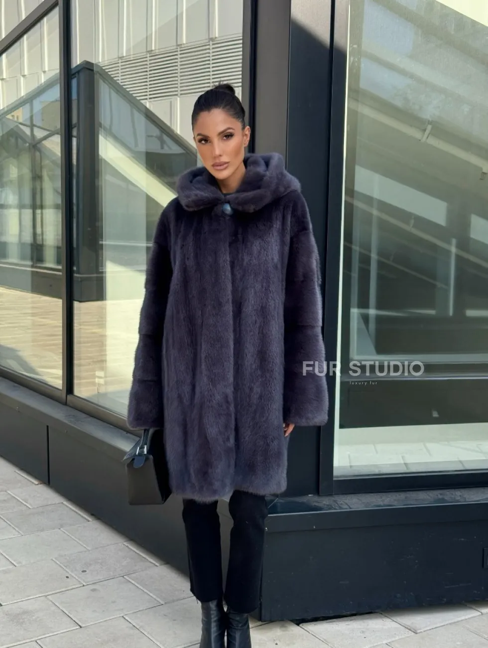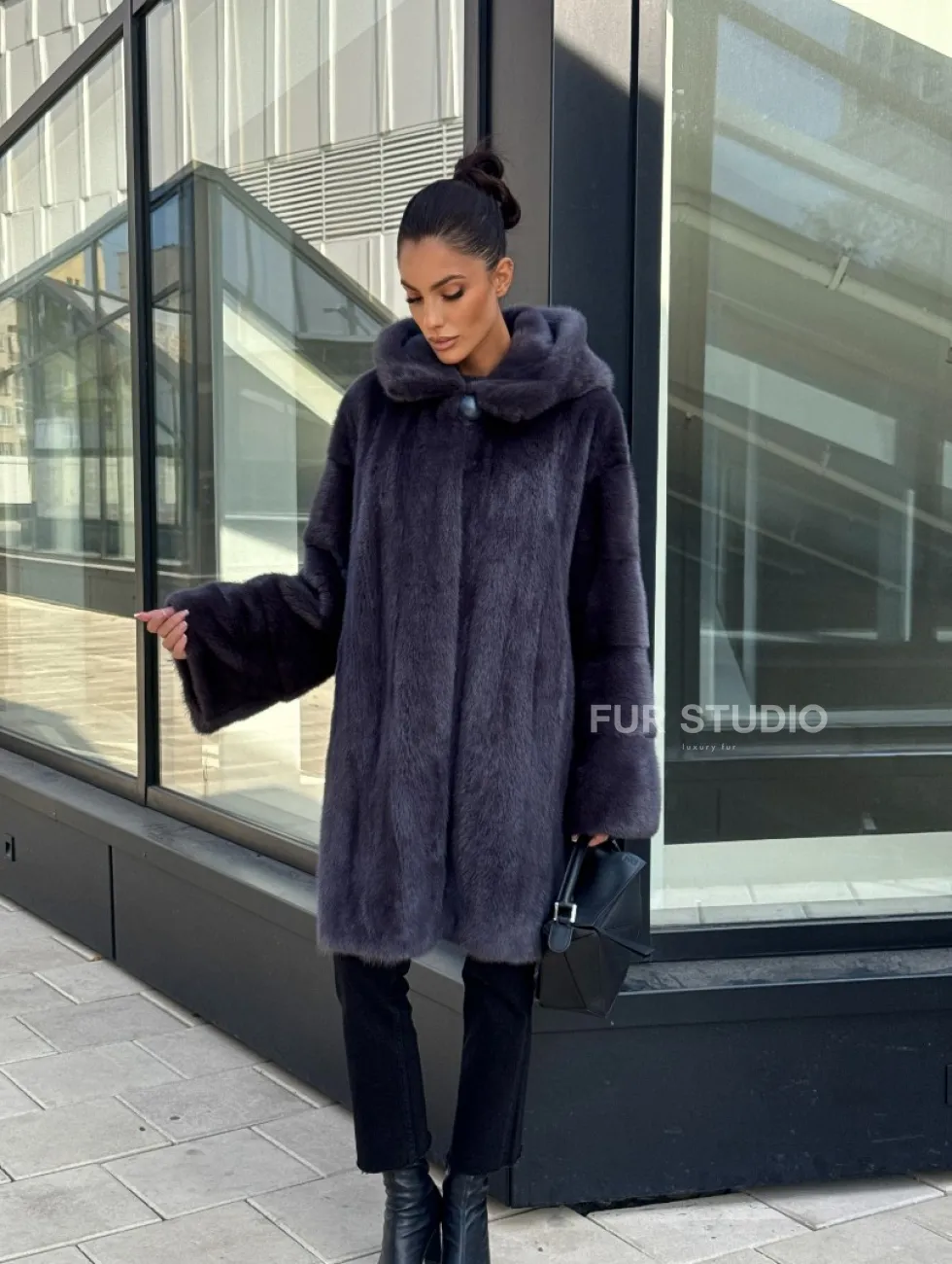 Норковая шуба с капюшоном, роспуск - темный графит доступна для покупки в нашем шоуруме Furs Studio в Чите. У нас так же есть доставка во все города России. Добавьте немного роскоши в свой гардероб с этой шубой, которая будет служить вам многие годы.