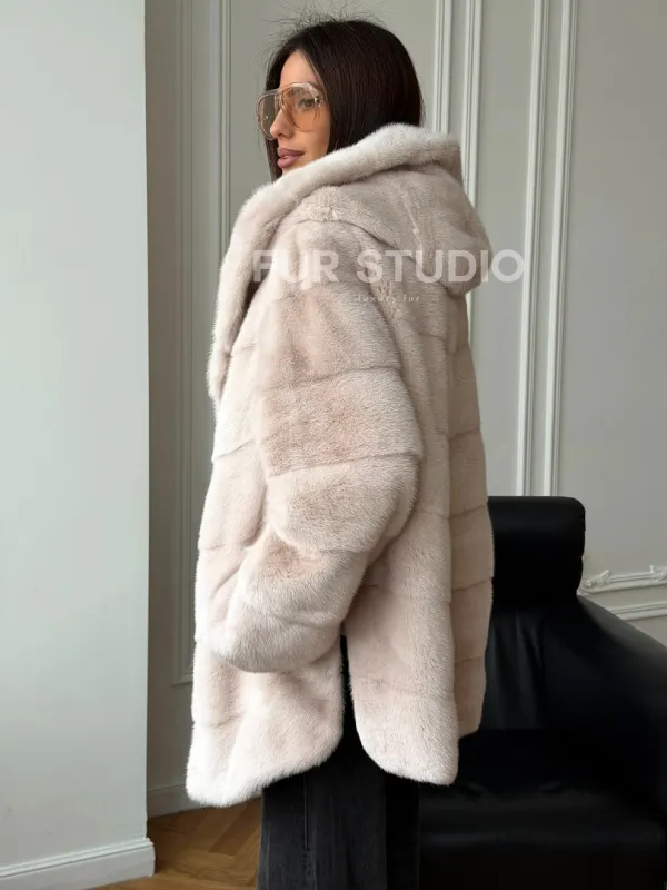 Норковая шуба с капюшоном - " рубашечный крой " доступна для покупки в нашем шоуруме Furs Studio в Чите. У нас так же есть доставка во все города России. Добавьте немного роскоши в свой гардероб с этой шубой, которая будет служить вам многие годы.