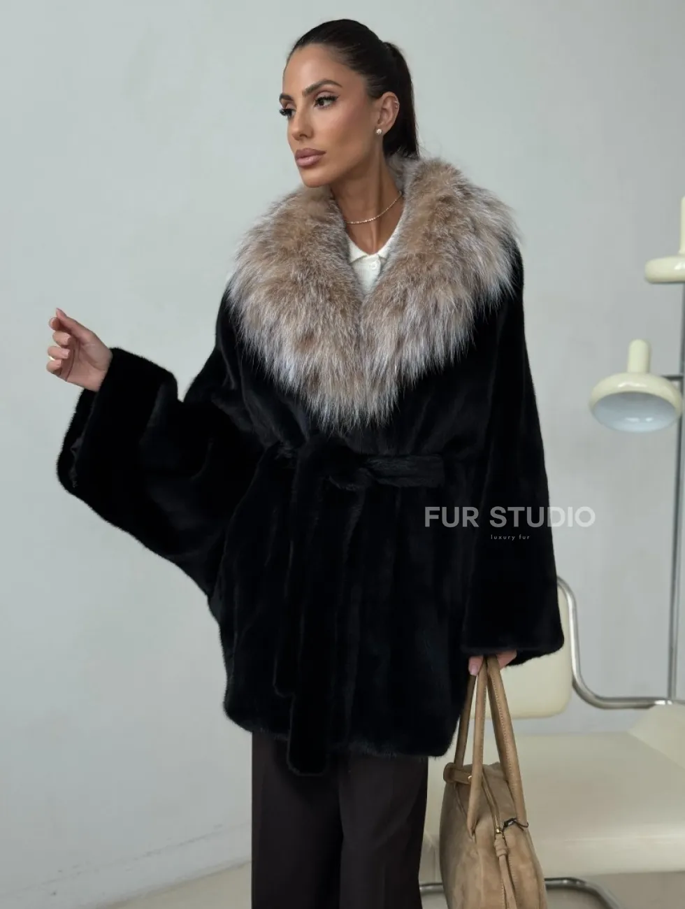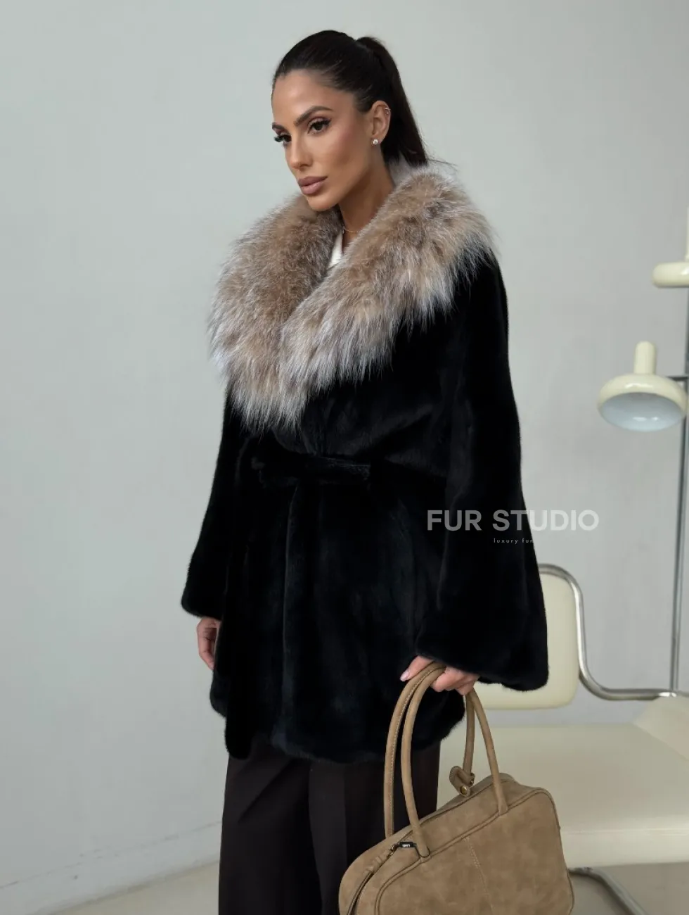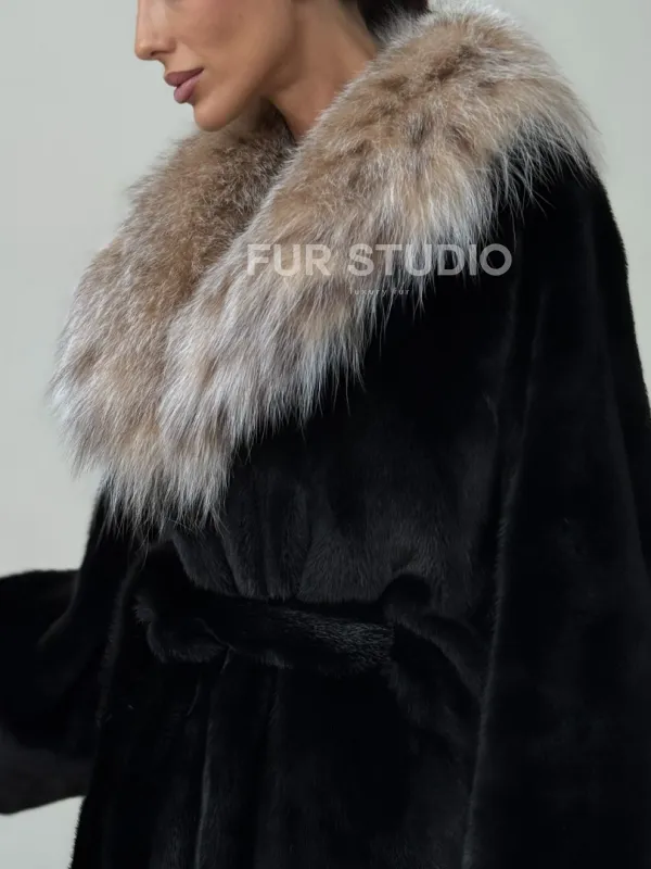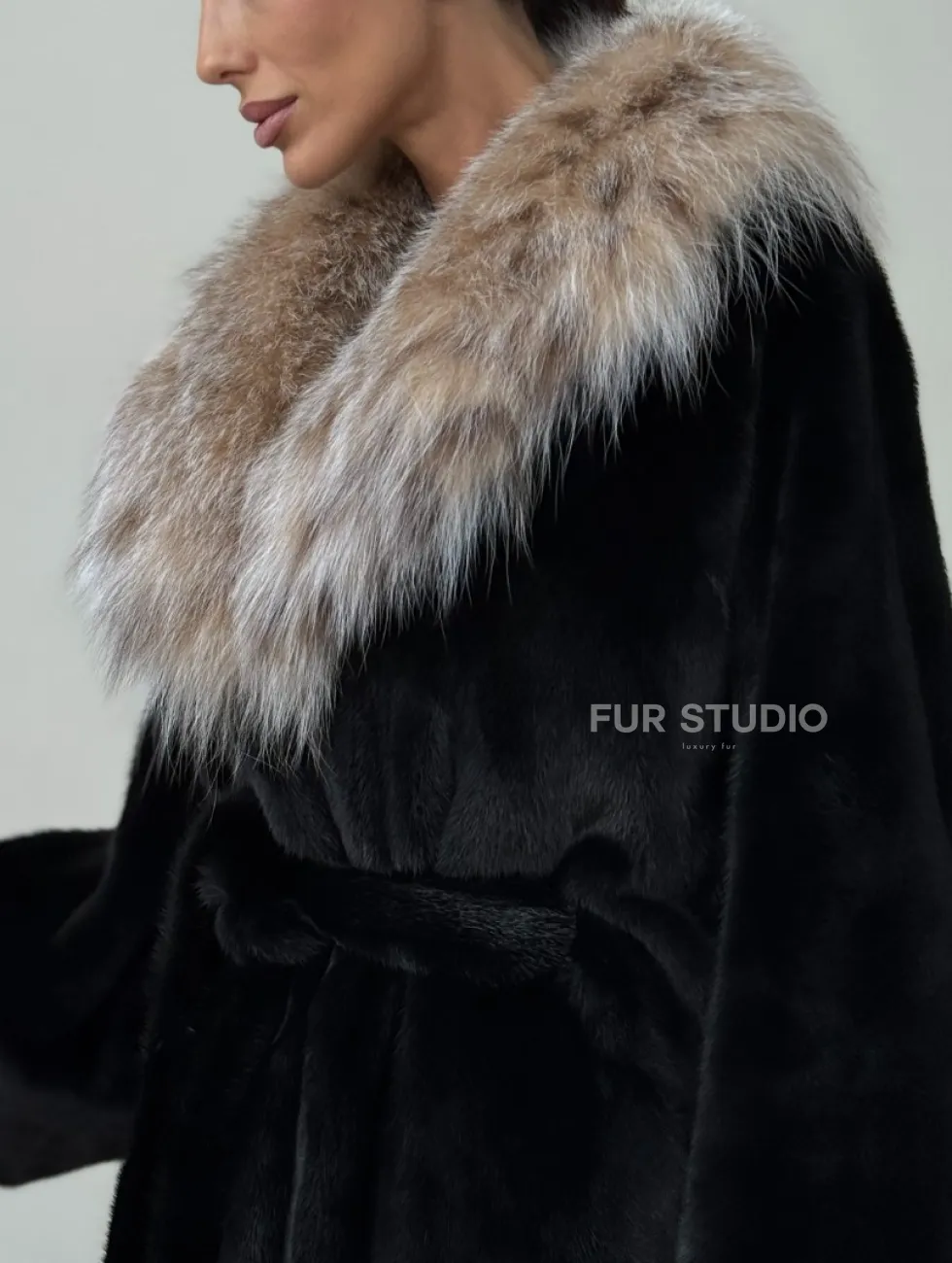 Мех данной шубы аукционная норка, цвет черный. Предлагается в размерах от 40 до 52. Длина модели 75-80 см, что выгодно подчеркивает фигуру девушек. Эта модель идеально подойдет для девушек и женщин, предпочитающих роскошные натуральные меха.
