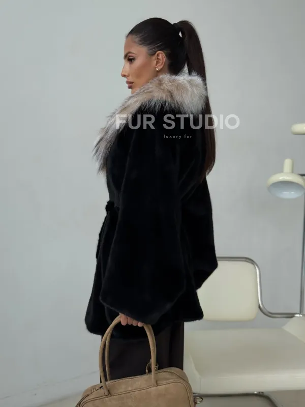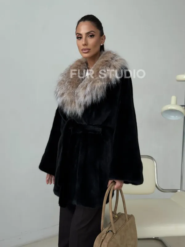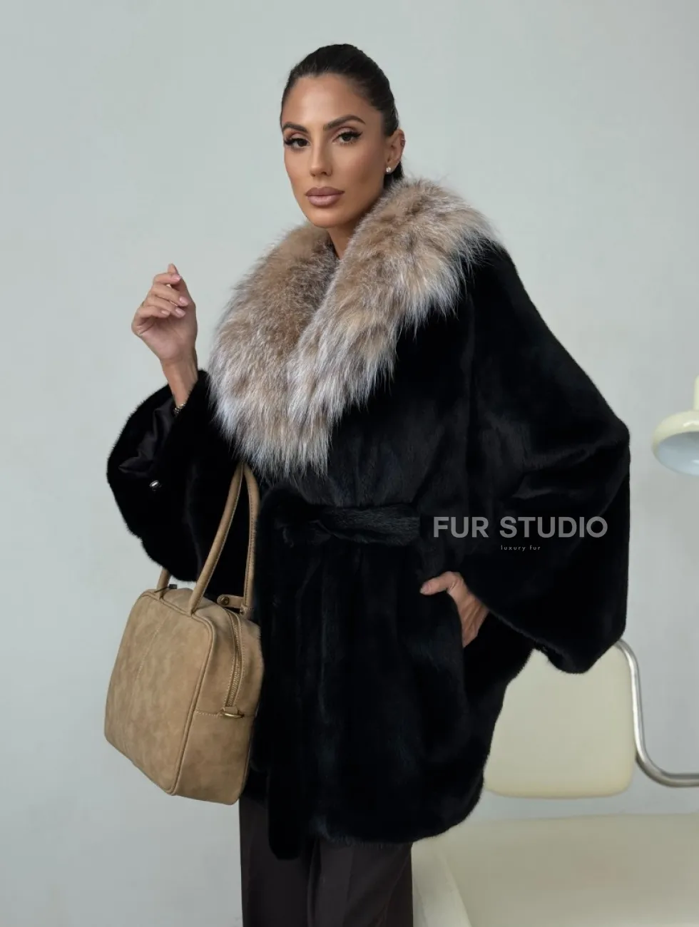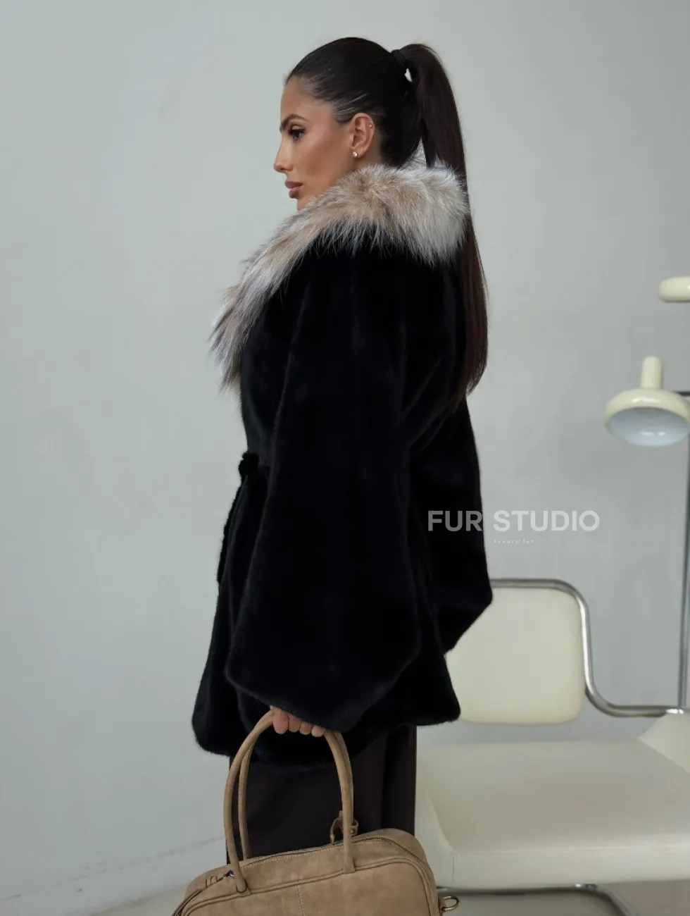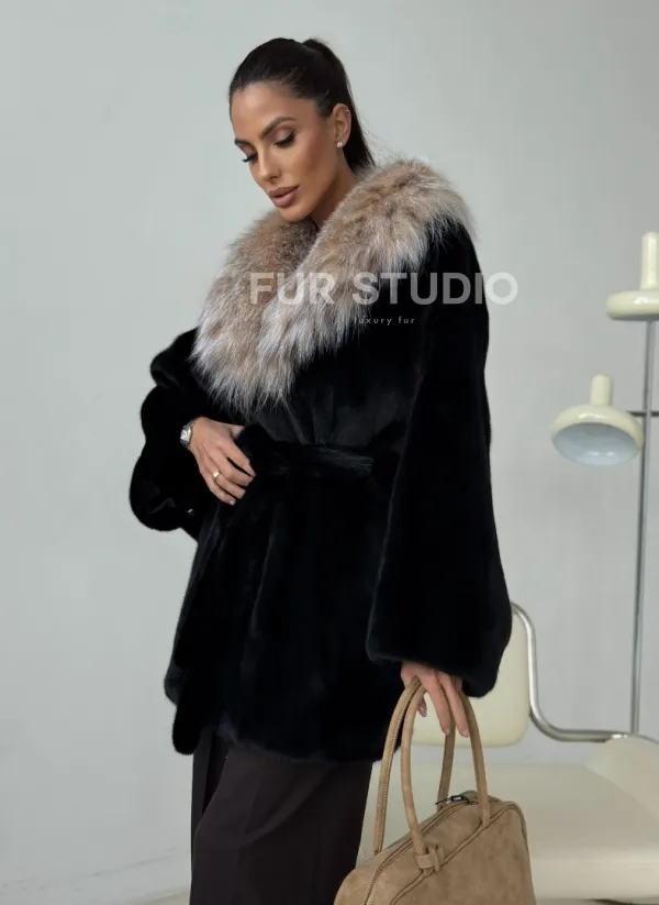 Мех данной шубы аукционная норка, цвет черный. Предлагается в размерах от 40 до 52. Длина модели 75-80 см, что выгодно подчеркивает фигуру девушек. Эта модель идеально подойдет для девушек и женщин, предпочитающих роскошные натуральные меха.