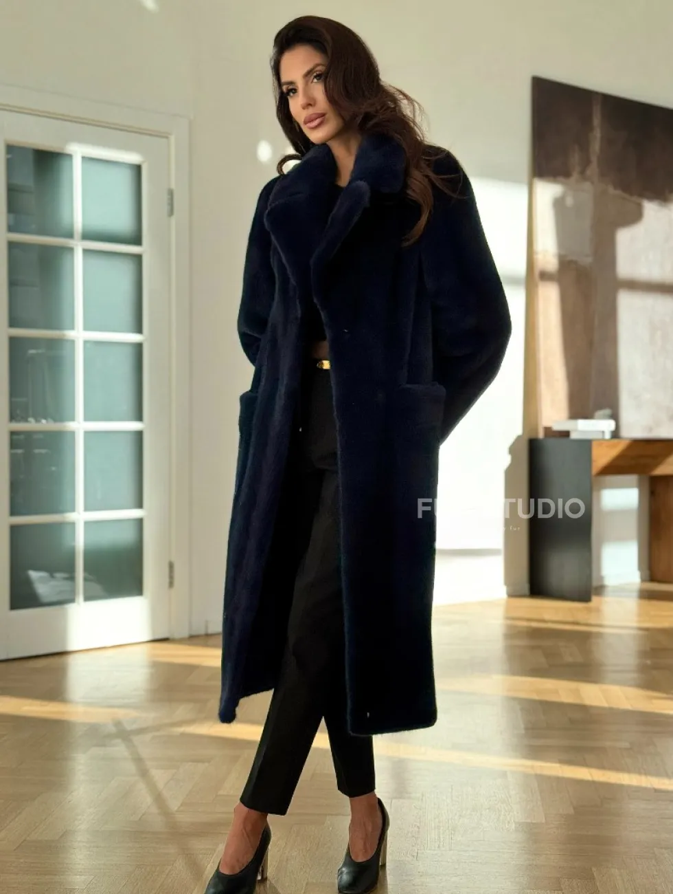 Мех данной шубы аукционная норка , цвет синий. Предлагается в размерах от 42 до 50. Длина модели 105-110 см , что выгодно подчеркивает фигуру девушек. Эта модель идеально подойдет для девушек и женщин, предпочитающих роскошные натуральные меха.