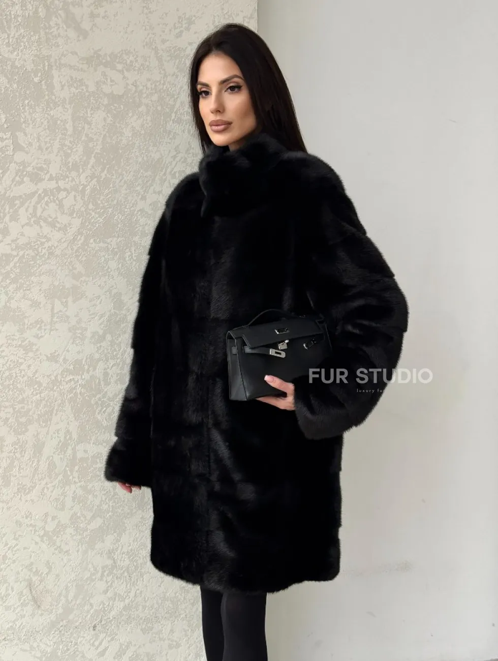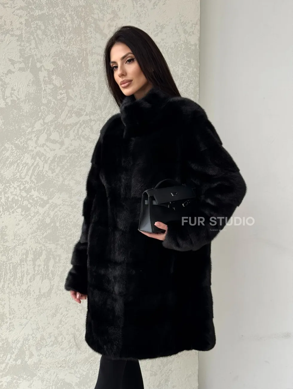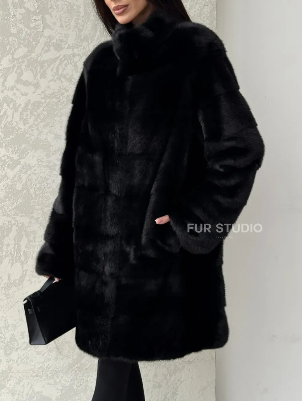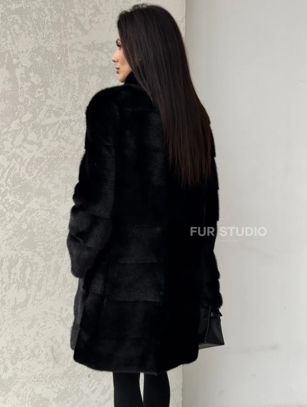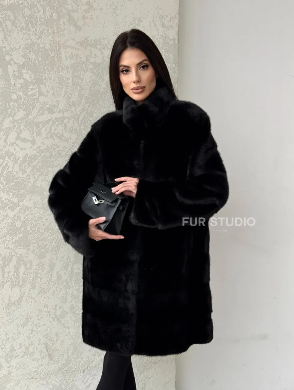 Норковая шуба в черном цвете воротник стойка доступна для покупки в нашем шоуруме Furs Studio в Чите. У нас так же есть доставка во все города России. Добавьте немного роскоши в свой гардероб с этой шубой, которая будет служить вам многие годы.