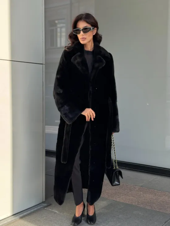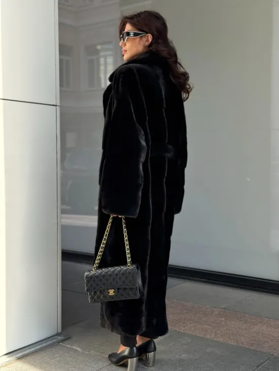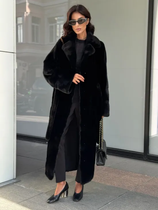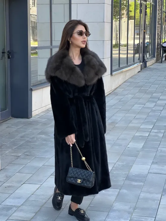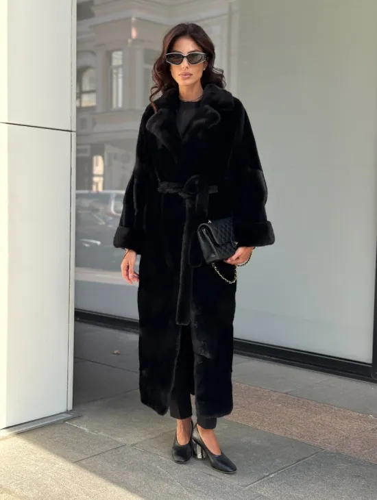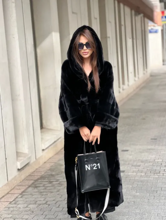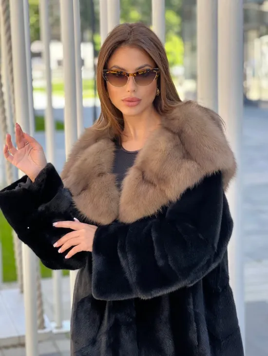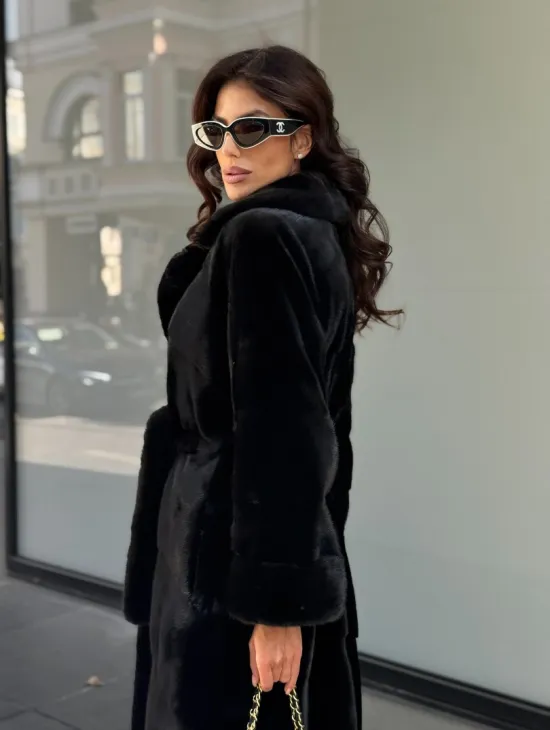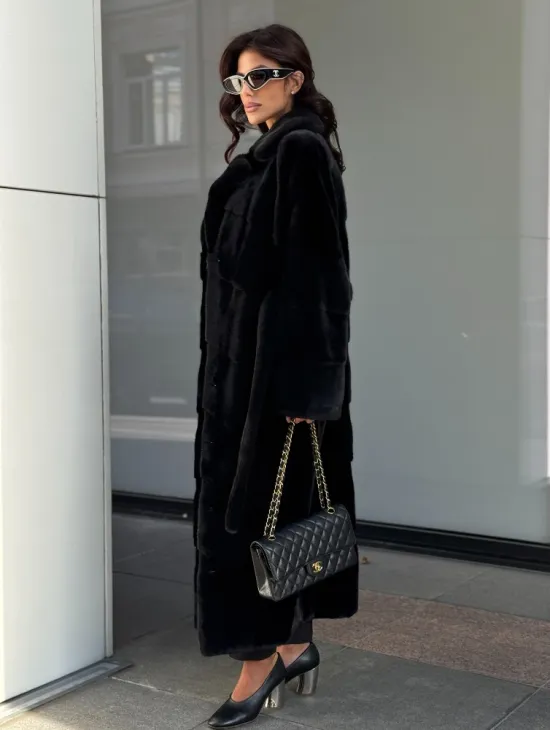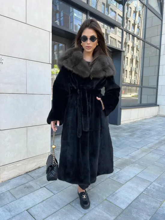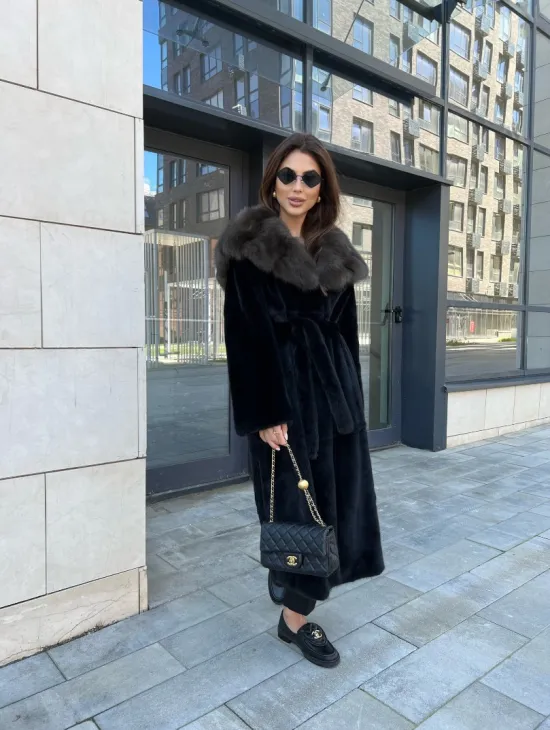 Мех данной шубы аукционная норка , цвет черный. Предлагается в размерах от 44 до 46. Длина модели 85-90 см, что выгодно подчеркивает фигуру девушек. Эта модель идеально подойдет для девушек и женщин, предпочитающих роскошные натуральные меха.