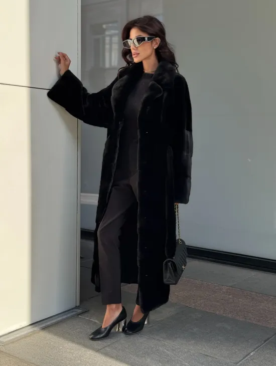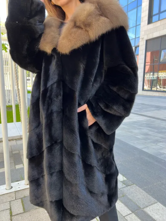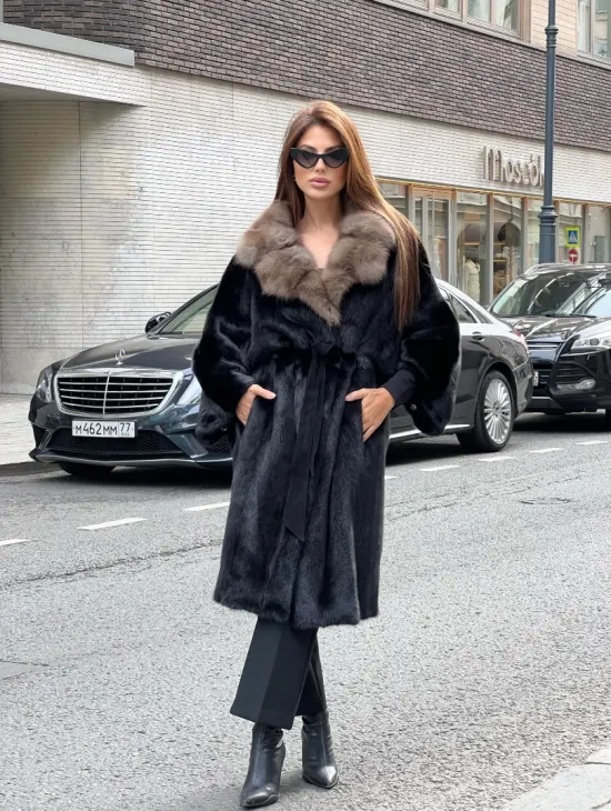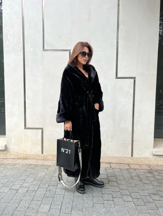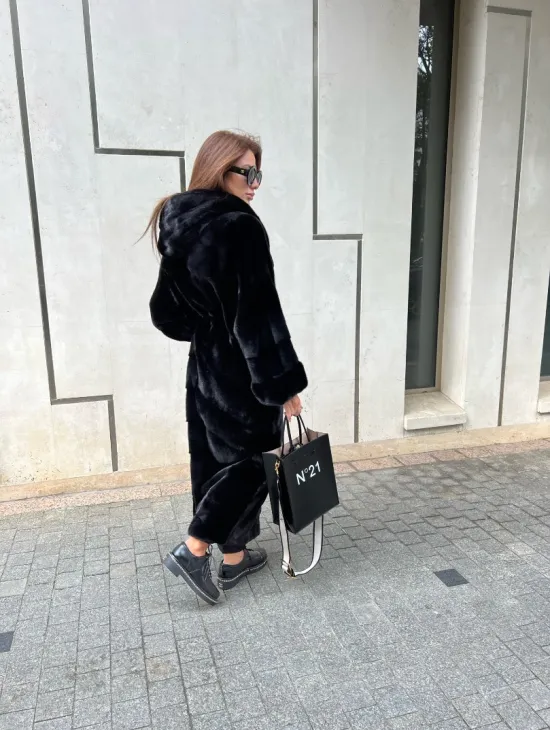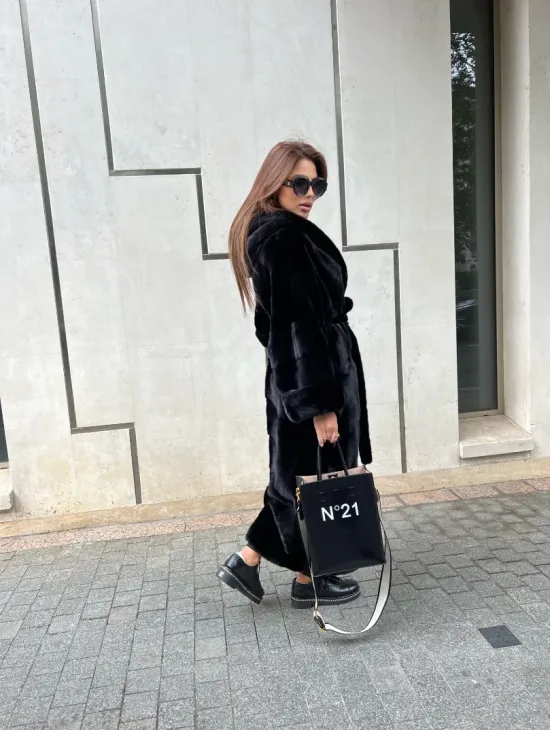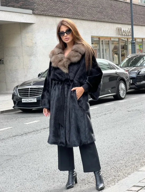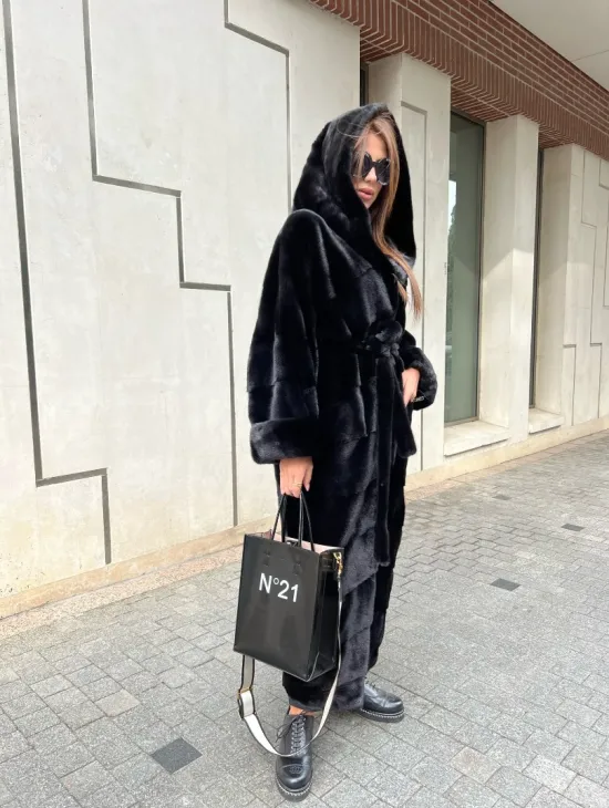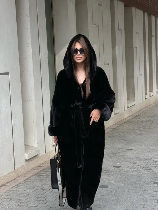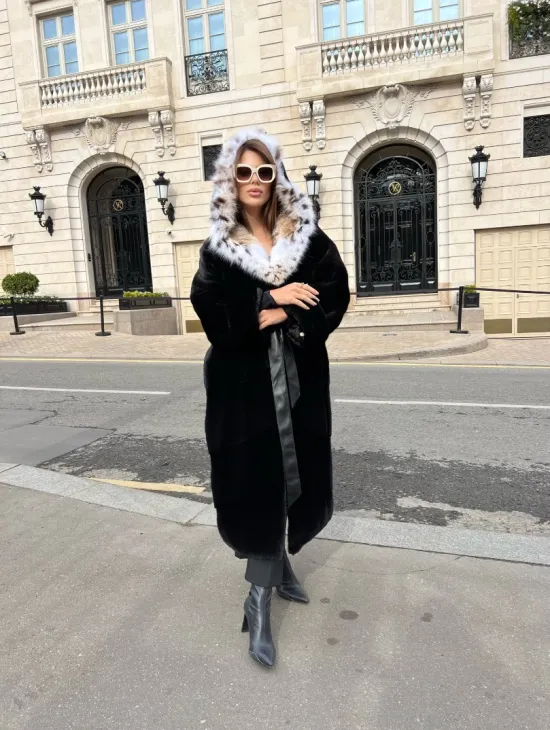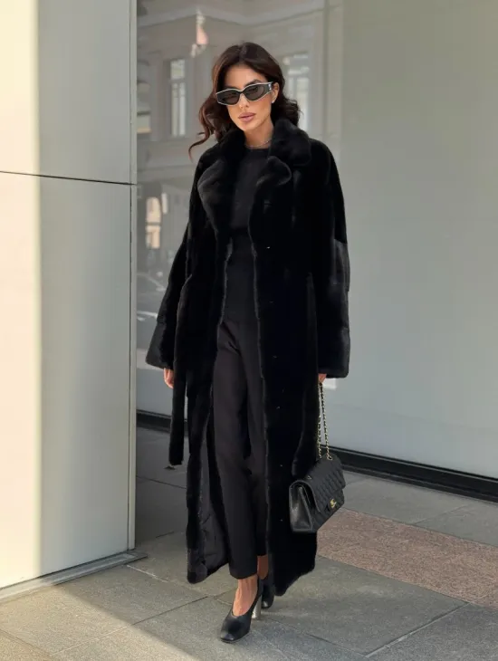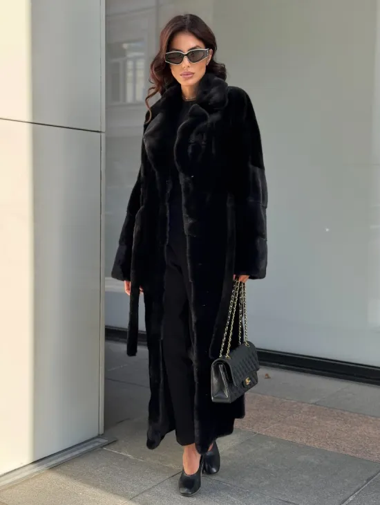 Мех данной шубы аукционная норка , цвет черный. Предлагается в размерах от 44 до 46. Длина модели 85-90 см, что выгодно подчеркивает фигуру девушек. Эта модель идеально подойдет для девушек и женщин, предпочитающих роскошные натуральные меха.