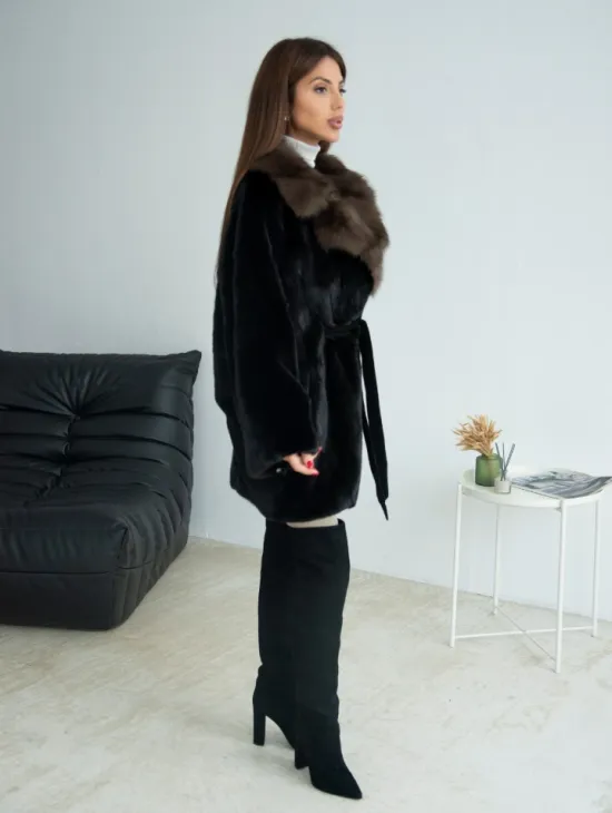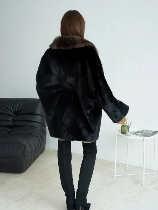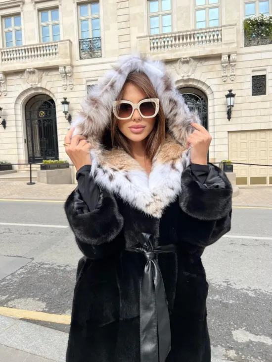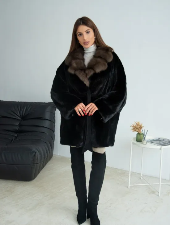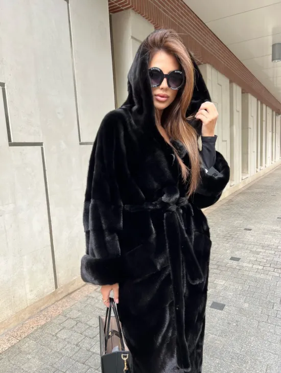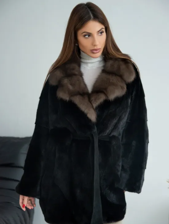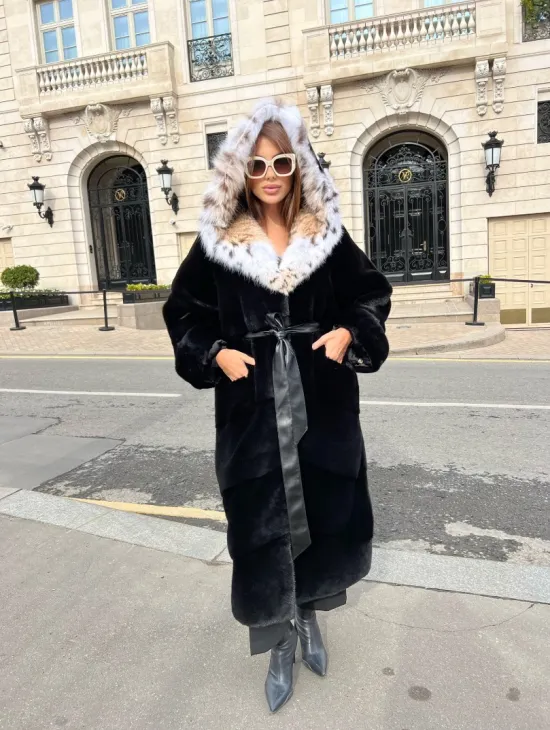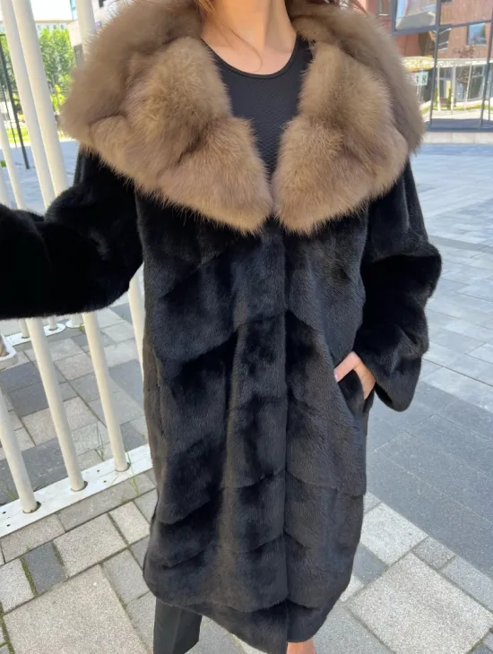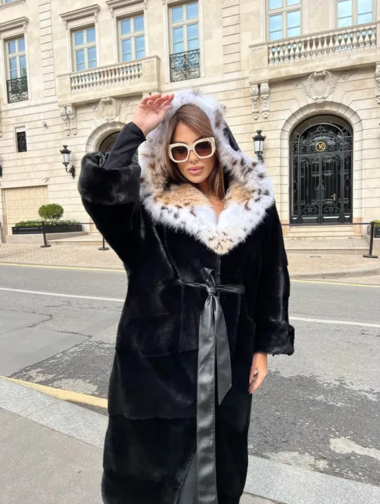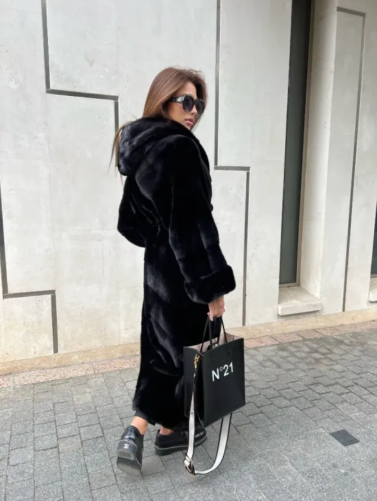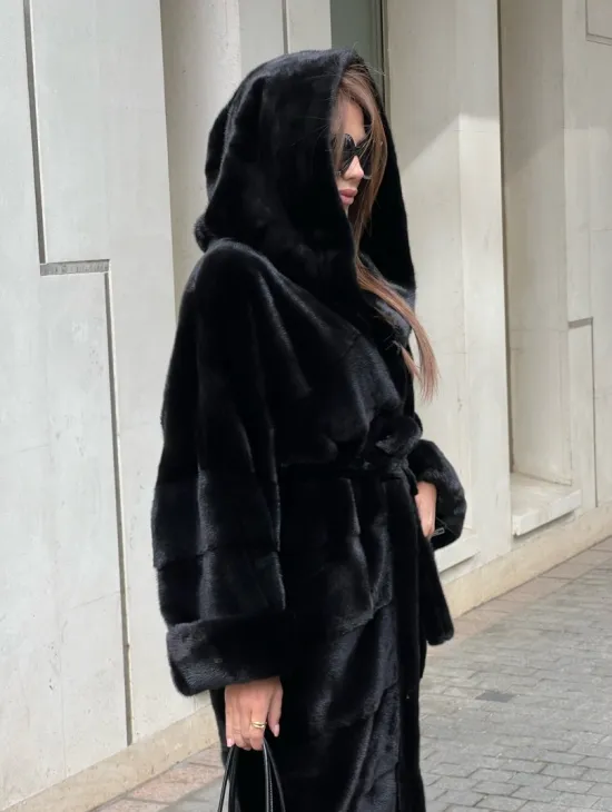 Мех данной шубы аукционная норка , цвет черный. Предлагается в размерах от 44 до 46. Длина модели 85-90 см, что выгодно подчеркивает фигуру девушек. Эта модель идеально подойдет для девушек и женщин, предпочитающих роскошные натуральные меха.