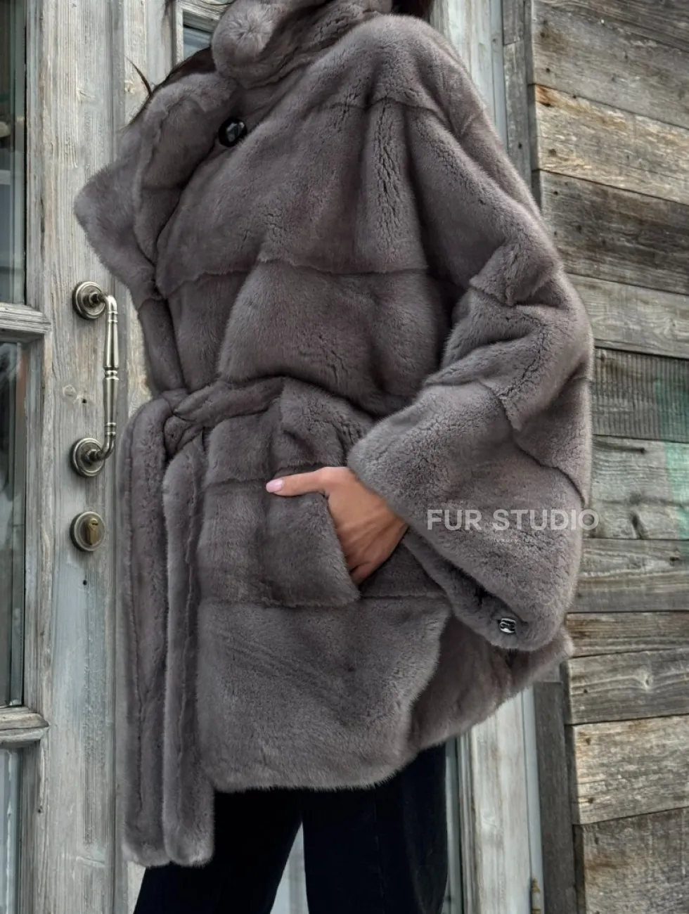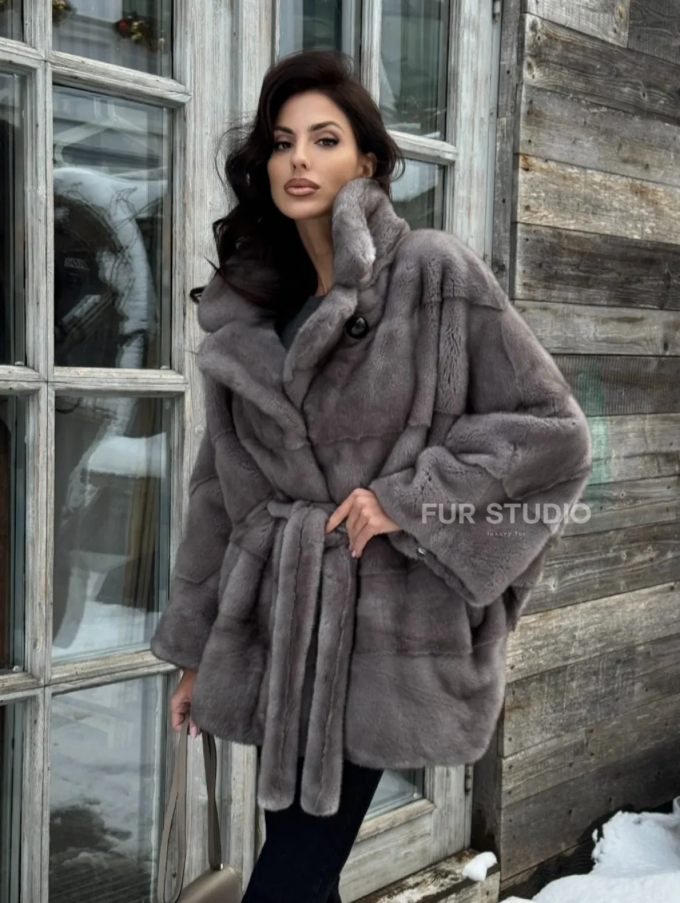 Норковая шуба в цвете графит с английским воротником - Летучая мышь доступна для покупки в нашем шоуруме Furs Studio в Чите. У нас так же есть доставка во все города России. Добавьте немного роскоши в свой гардероб с этой шубой, которая будет служить вам многие годы.