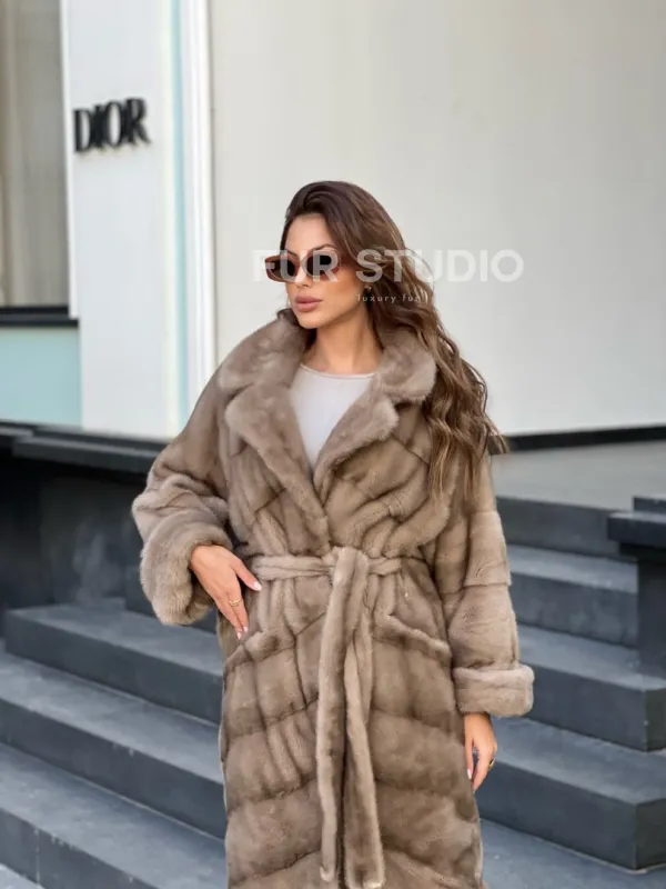 Норковая шуба в цвете пастель – статус и роскошный образ в прохладное время года. Каждая женщина мечтает об изделии из норки. Шуба подчеркивает безукоризненный вкус владелицы. Длина бережно защитит от непогоды в любой мороз. В изделии будет тепло даже в сильные морозы. Оригинальный пояс выделит изящество талии, придаст шарм образу. Удобный воротник согреет шею.