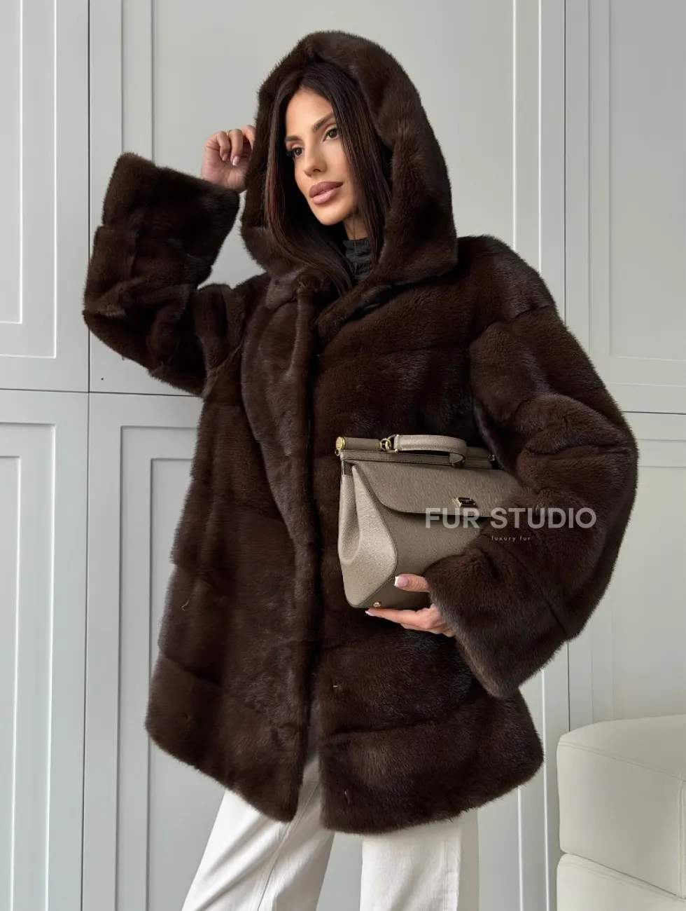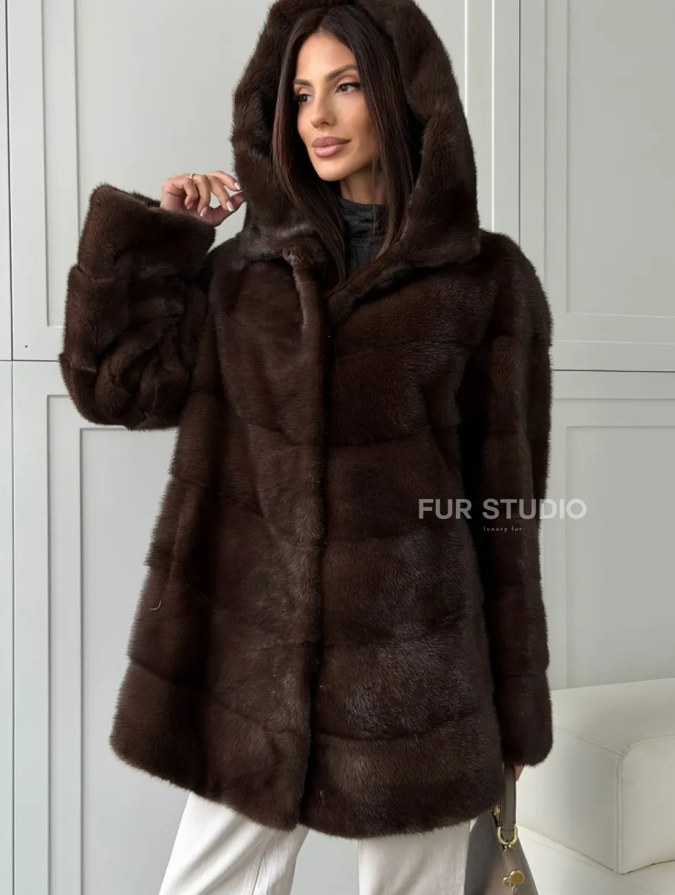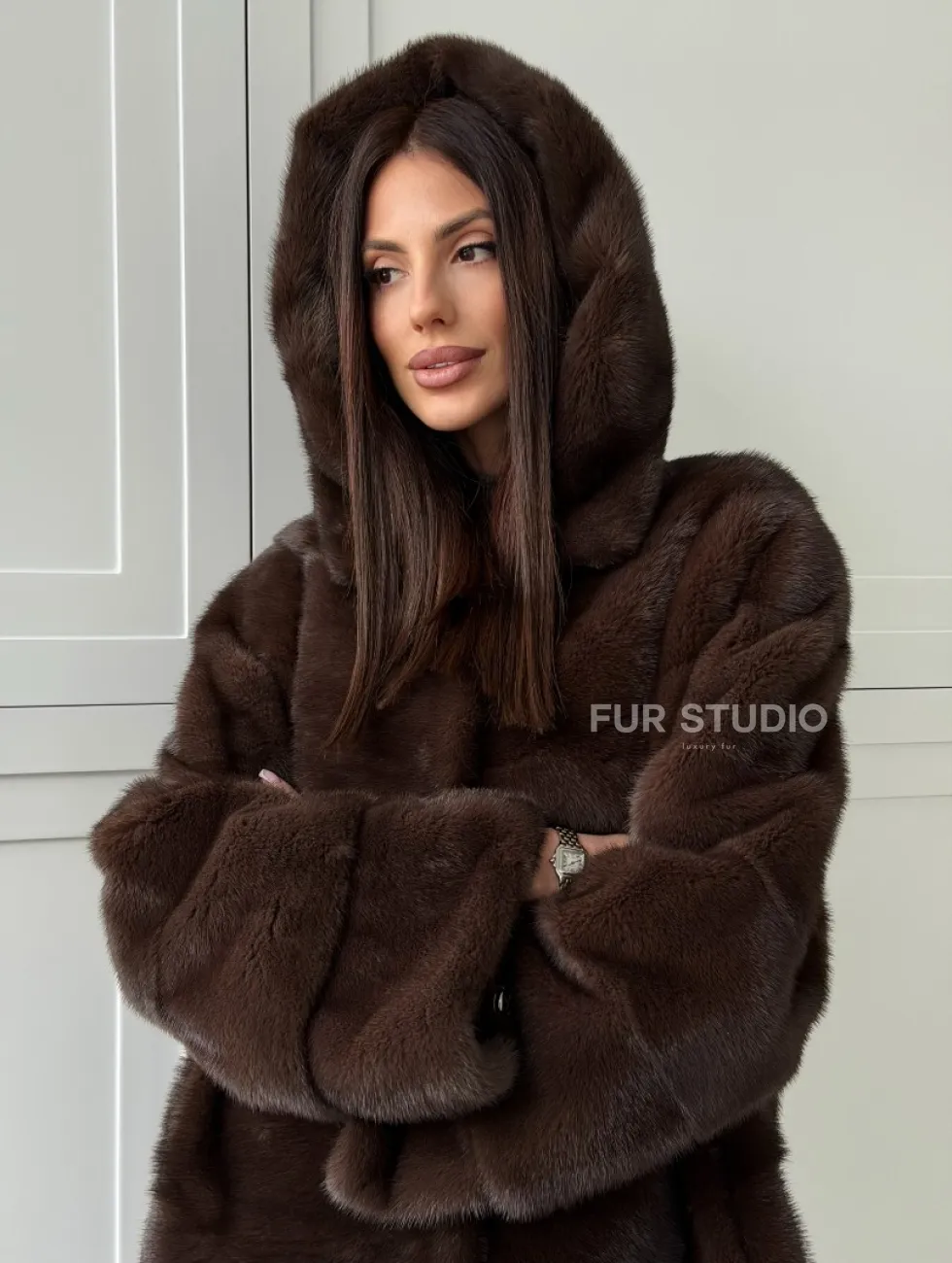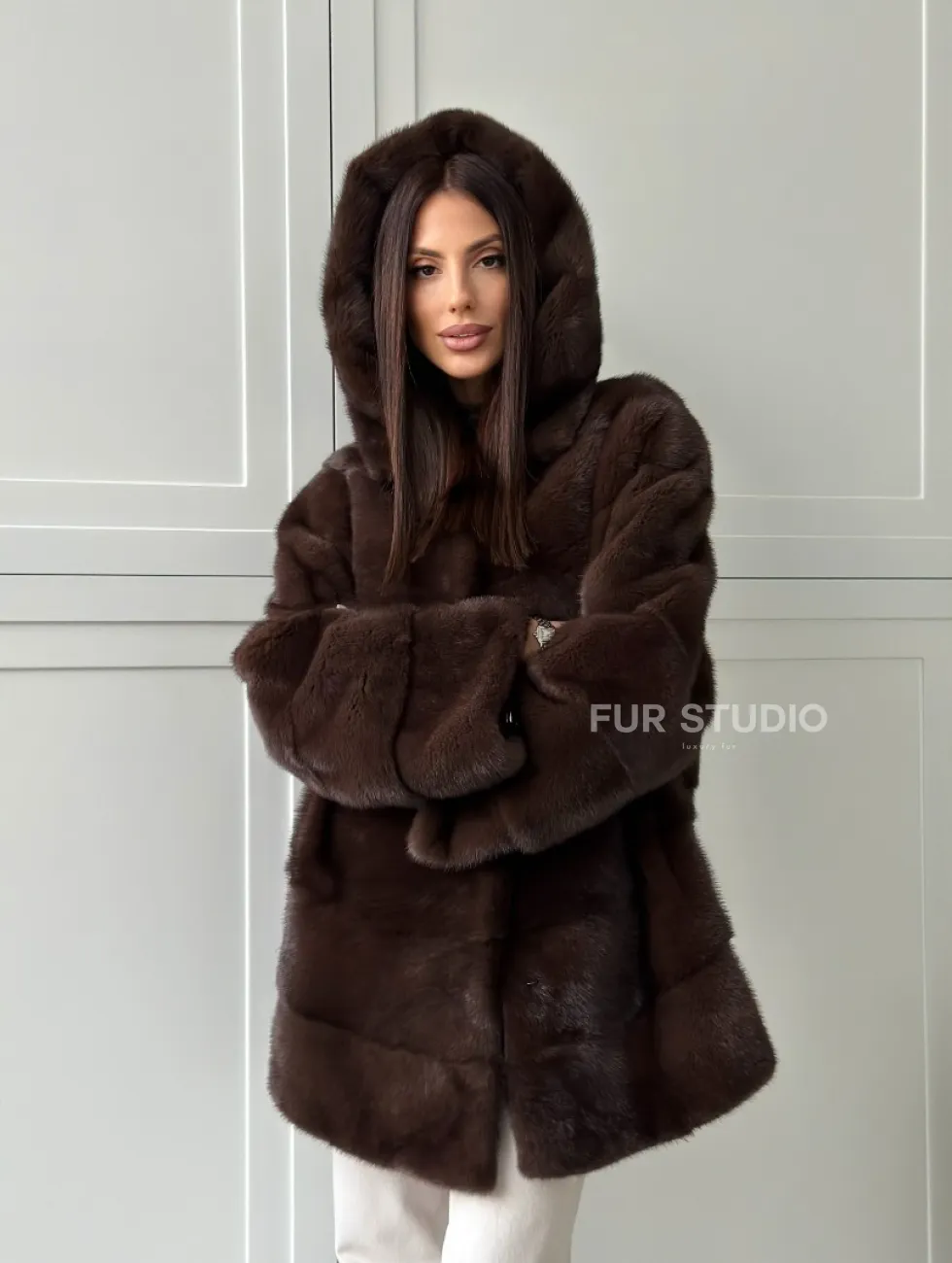 Норковая шуба в стиле «рубашка» с капюшоном доступна для покупки в нашем шоуруме Furs Studio в Чите. У нас так же есть доставка во все города России. Добавьте немного роскоши в свой гардероб с этой шубой, которая будет служить вам многие годы.