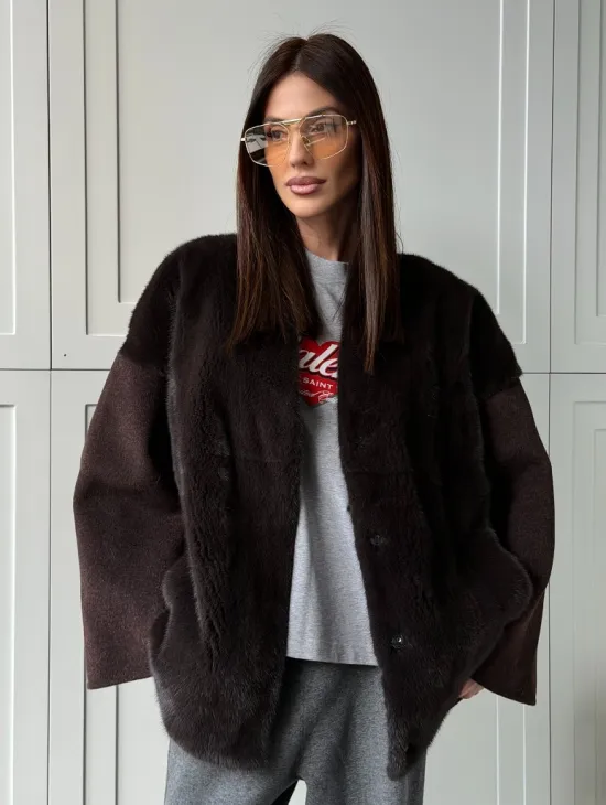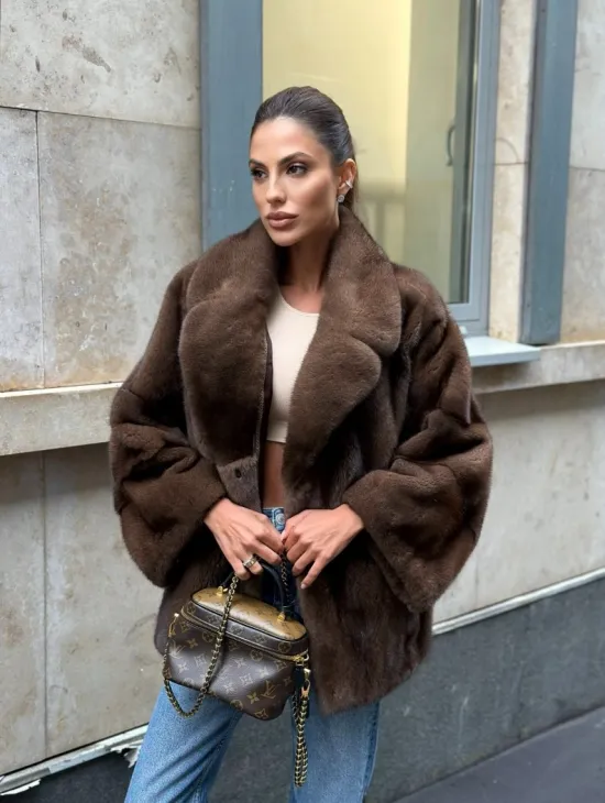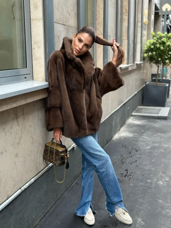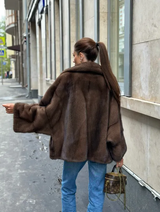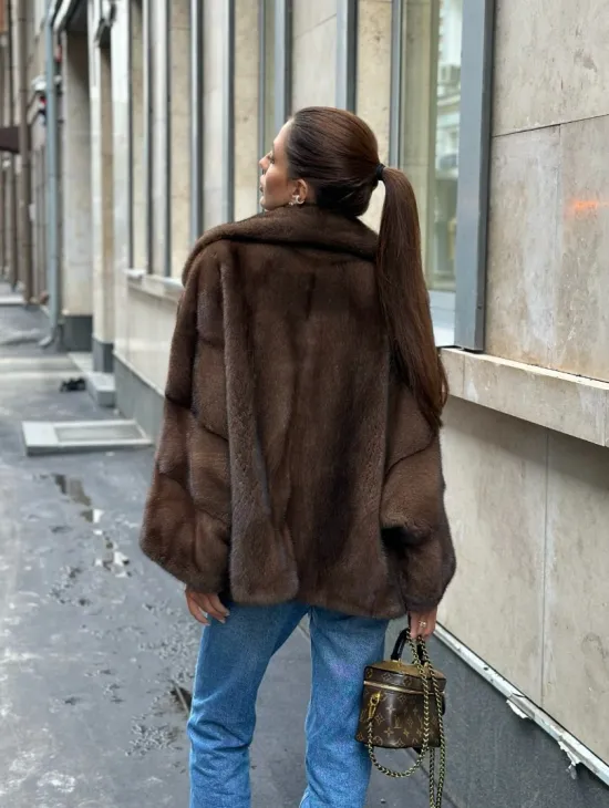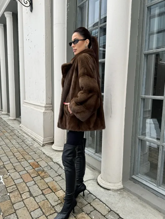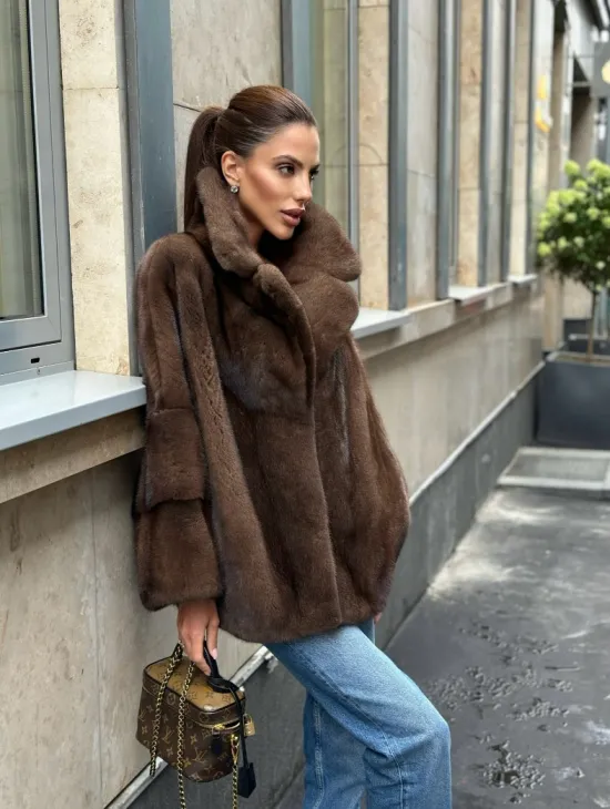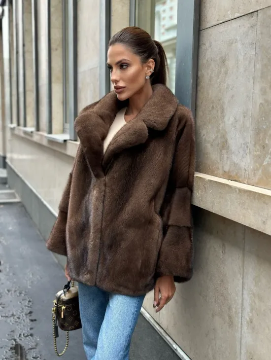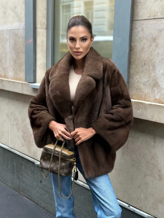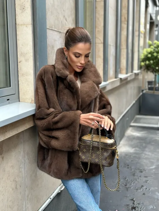 Мех данной шубы аукционная норка , цвет коричневый. Предлагается в размерах от 42 до 58. Длина модели 75-80 см, что выгодно подчеркивает фигуру девушек. Эта модель идеально подойдет для девушек и женщин, предпочитающих роскошные натуральные меха.