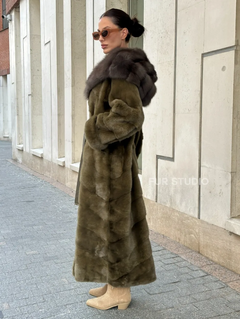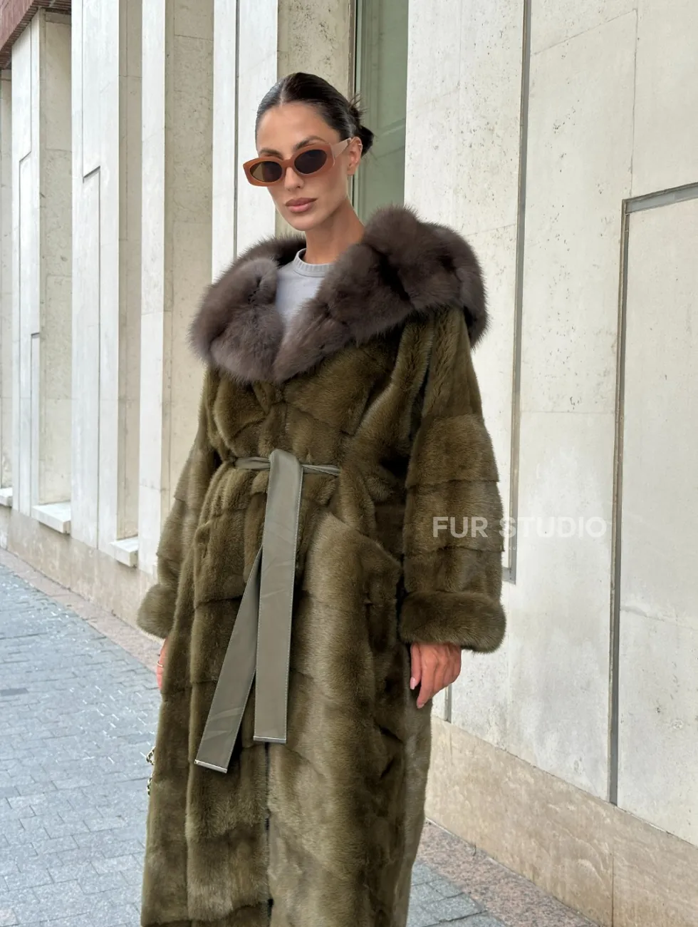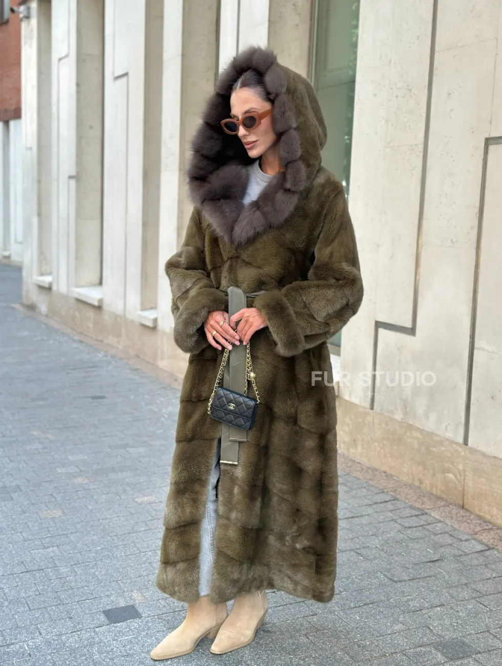 Норковая шуба зеленого цвета с капюшоном из меха куницы доступна для покупки в нашем шоуруме Furs Studio в Чите. У нас так же есть доставка во все города России. Добавьте немного роскоши в свой гардероб с этой шубой, которая будет служить вам многие годы.