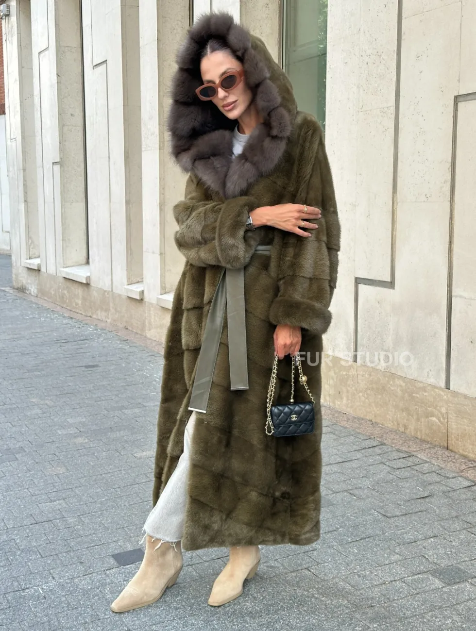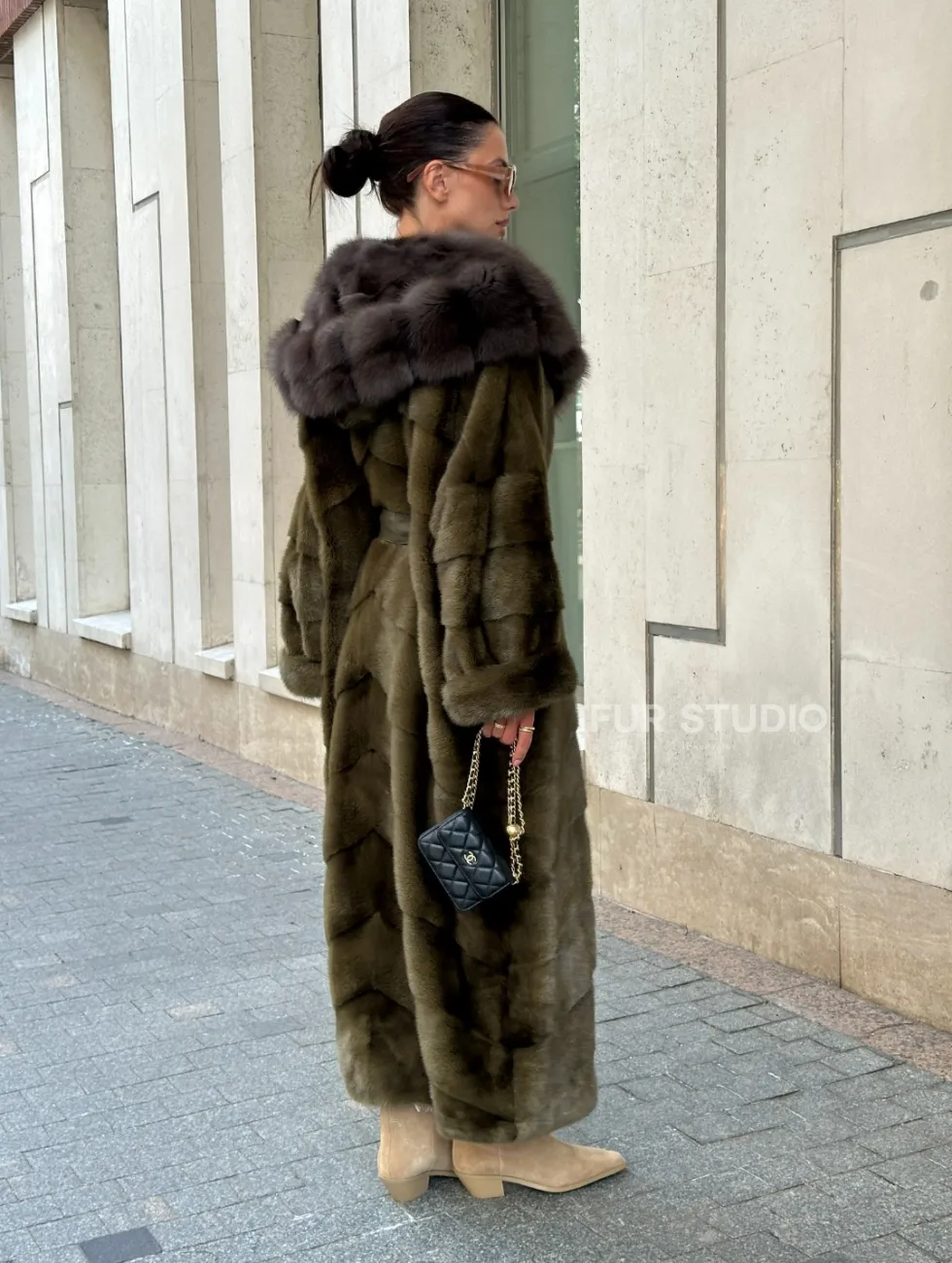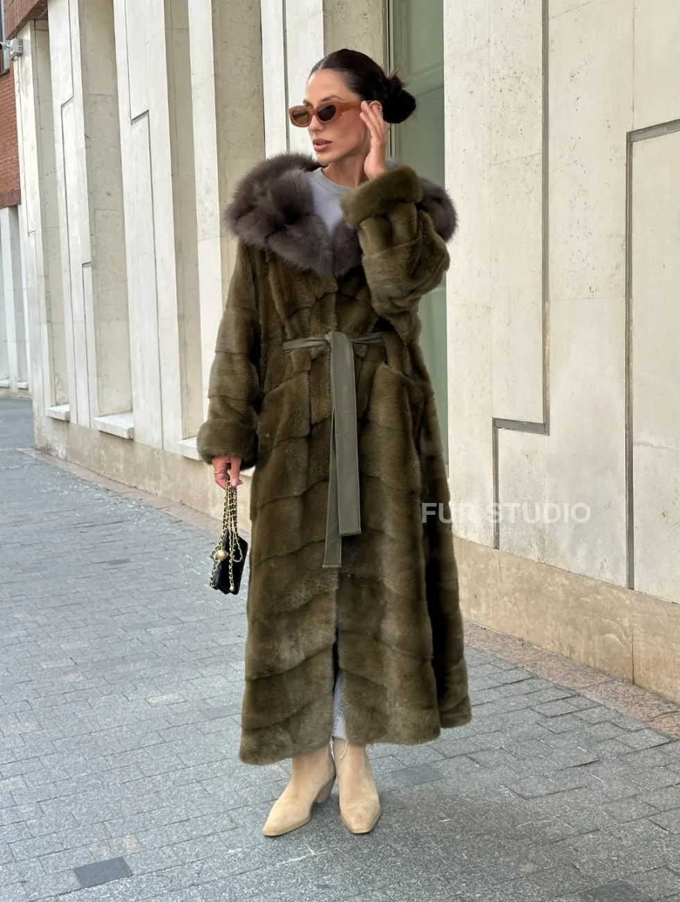 Норковая шуба зеленого цвета с капюшоном из меха куницы доступна для покупки в нашем шоуруме Furs Studio в Чите. У нас так же есть доставка во все города России. Добавьте немного роскоши в свой гардероб с этой шубой, которая будет служить вам многие годы.