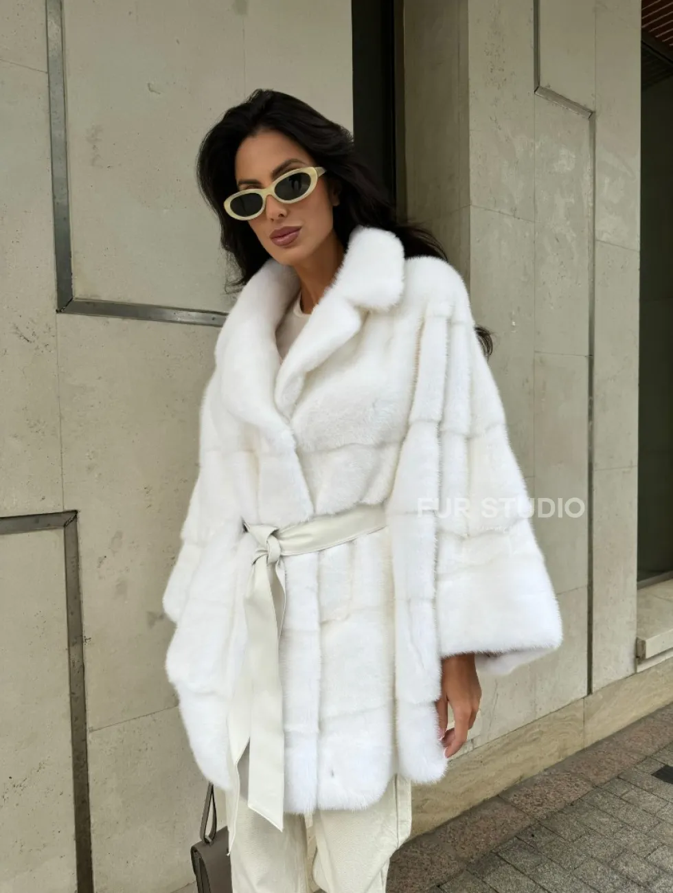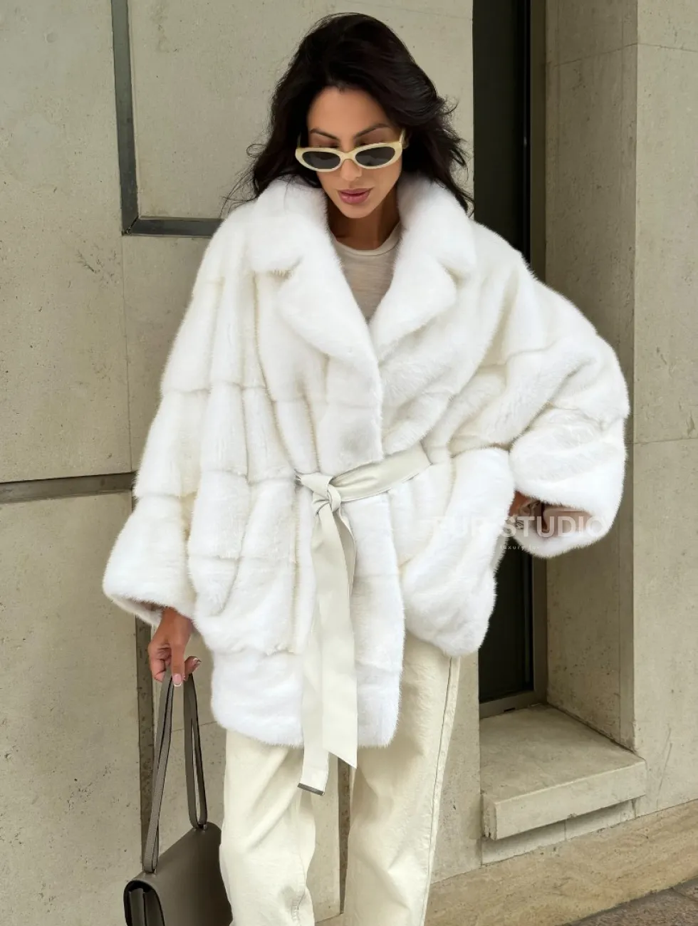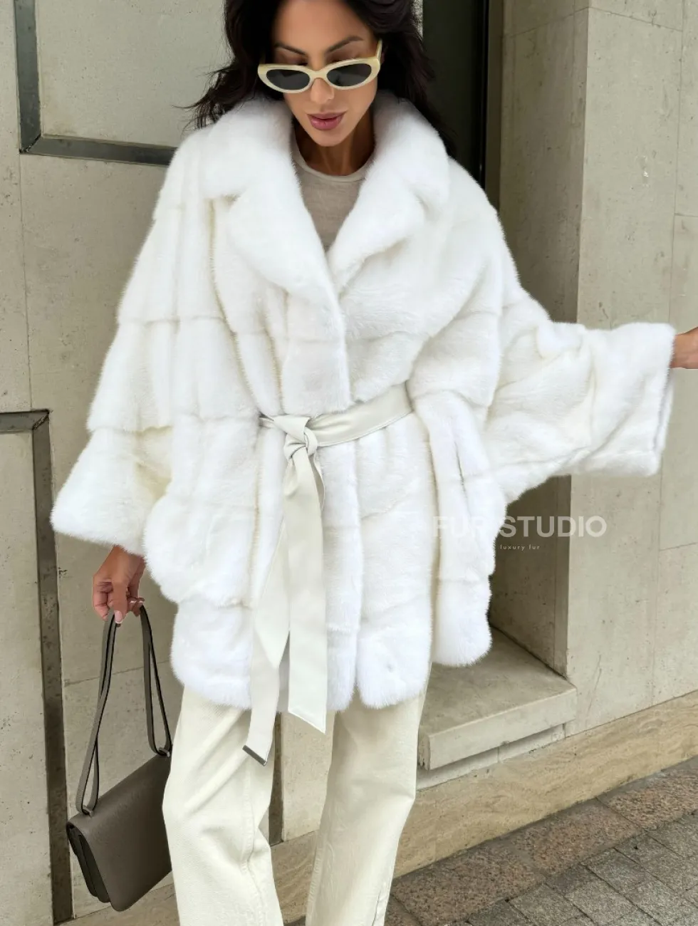 Норковая шубу Saga furs в белом цвете фасон - летучая мышь доступна для покупки в нашем шоуруме Furs Studio в Чите. У нас так же есть доставка во все города России. Добавьте немного роскоши в свой гардероб с этой шубой, которая будет служить вам многие годы.