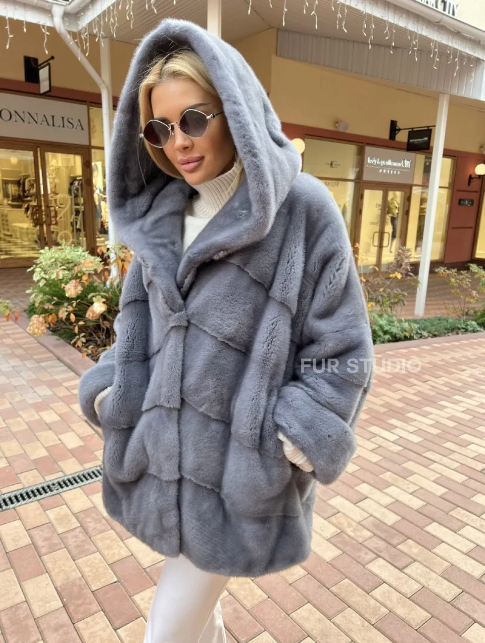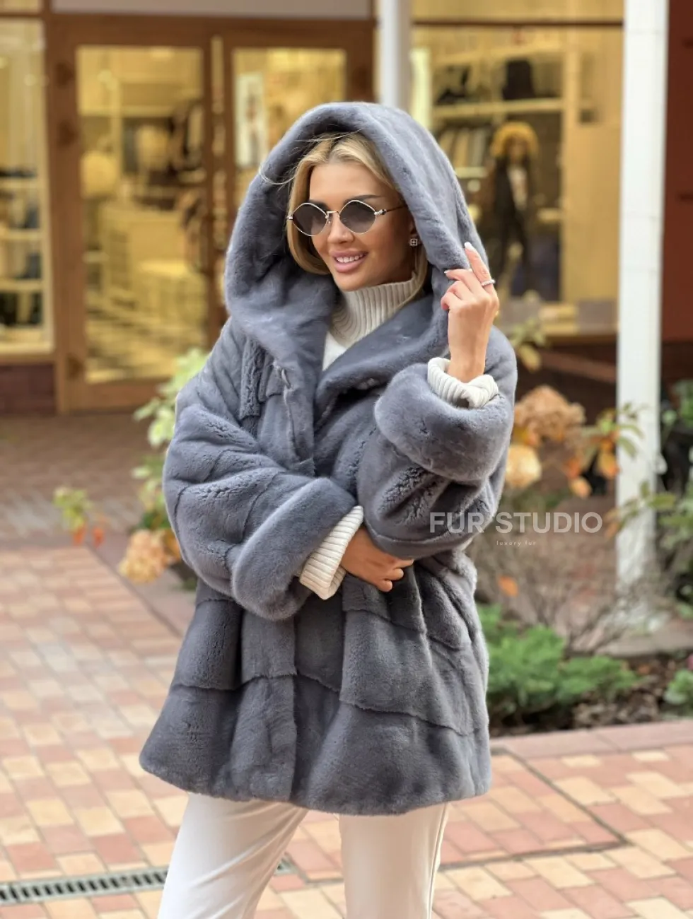 Удобные карманы сохранят тепло ручек. Прямой крой изделия не сковывает движений и скрывает недостатки. Модель удобна, если вы водите машину. Изделие сочетается с базовым гардеробом, подойдет под вечерний look. Добавьте к образу стильную сумочку и оригинальную обувь, вы готовы покорять мир. Купить норковое пончо с капюшоном в цвете графит могут женщины с изысканным вкусом.