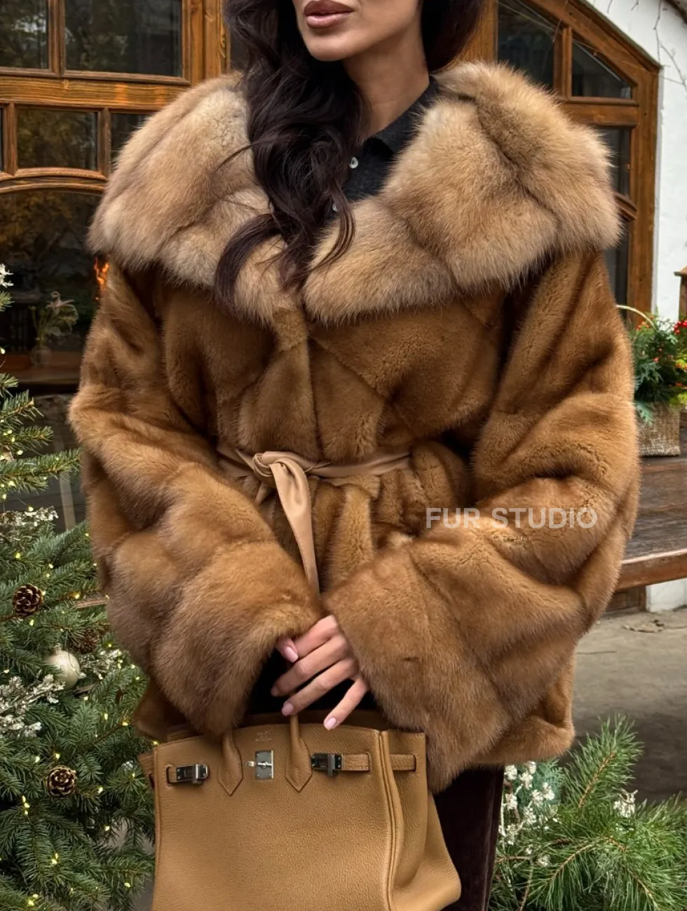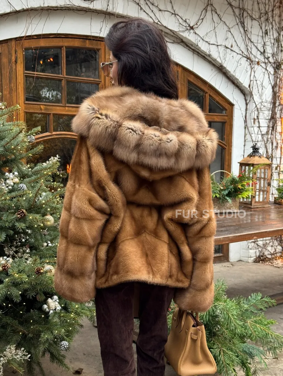 Норковое пончо-шуба в цвете золото с меховым капюшоном из куницы доступна для покупки в нашем шоуруме Furs Studio в Чите. У нас так же есть доставка во все города России. Добавьте немного роскоши в свой гардероб с этой шубой, которая будет служить вам многие годы.