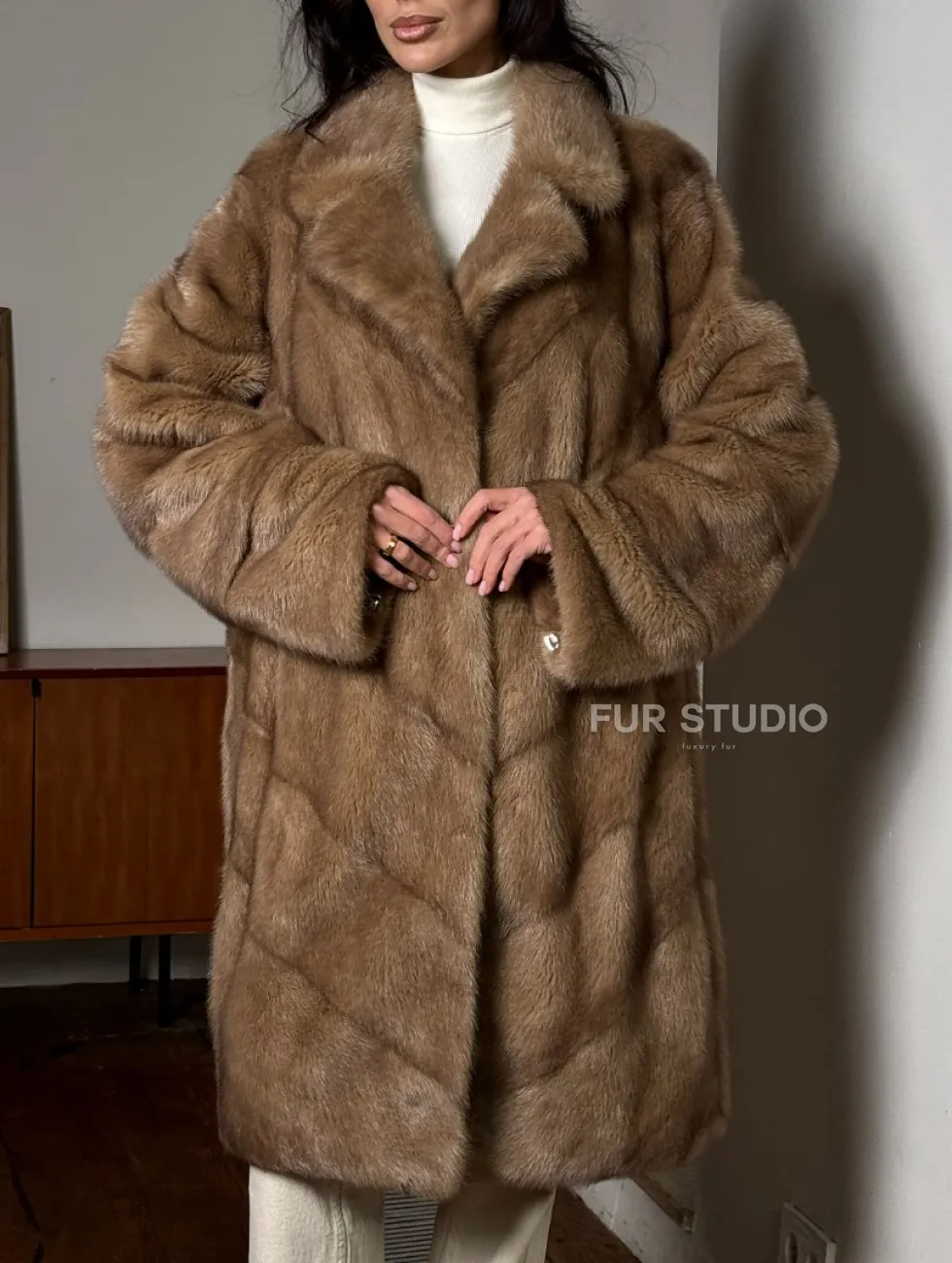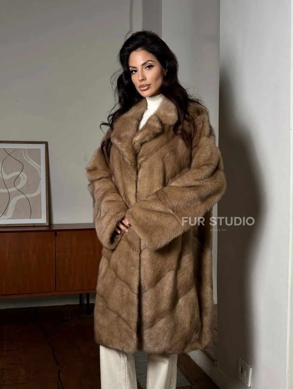 Норковое женское пальто из меха аукционной норки английский воротник доступна для покупки в нашем шоуруме Furs Studio в Чите. У нас так же есть доставка во все города России. Добавьте немного роскоши в свой гардероб с этой шубой, которая будет служить вам многие годы.