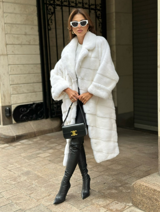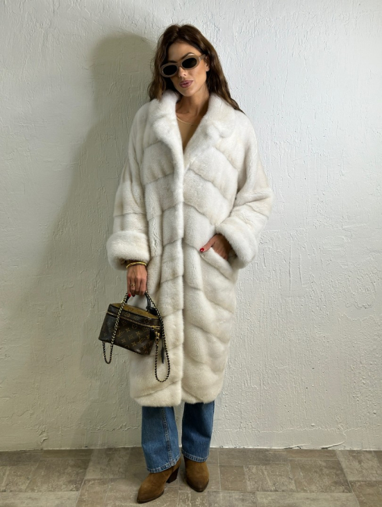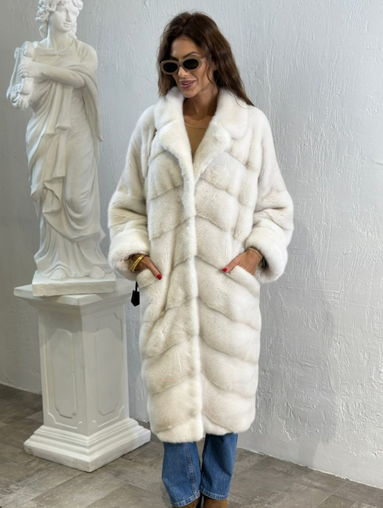 Белая шуба из мех норки NAFA