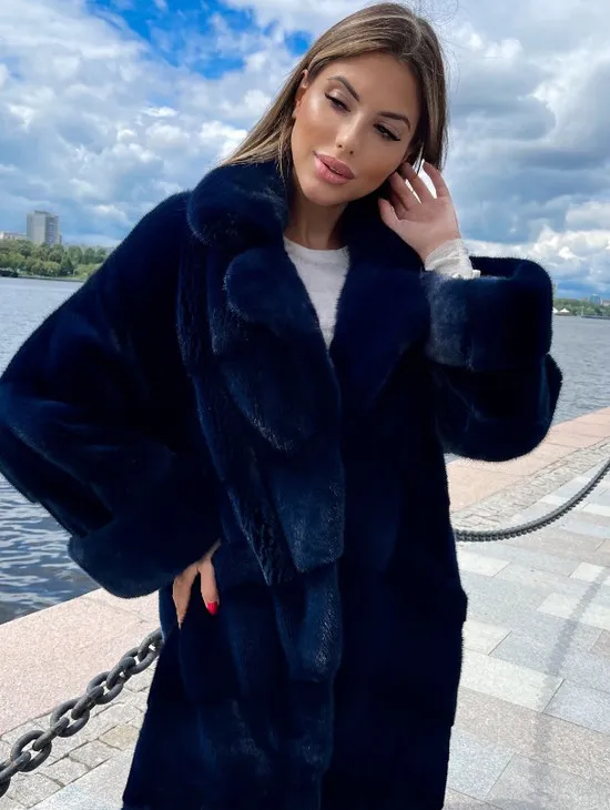 Пончо норковое с капюшоном из меха рыси в цвете пастель