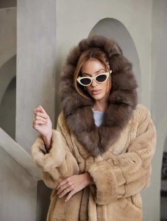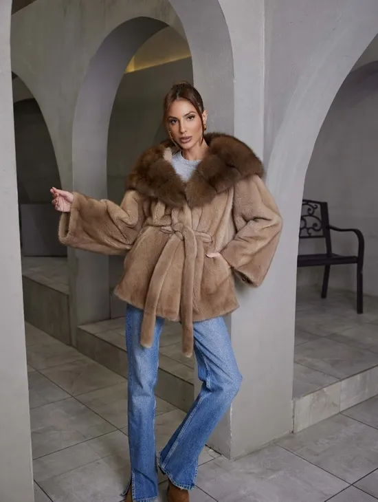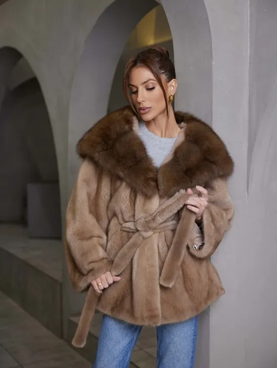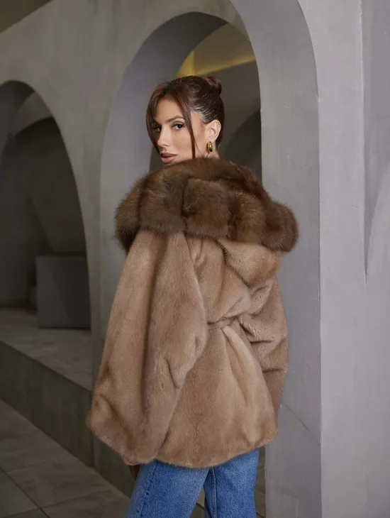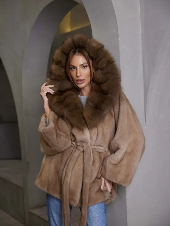 Норка NAFA пошив роспуск пастель с капюшоном куница -летучая мышь