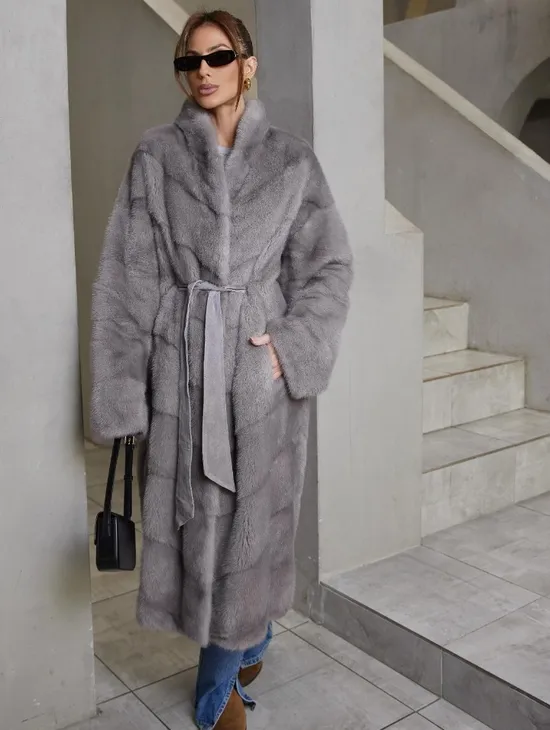 Норка паркет кимоно английский воротник NAFA - сапфир