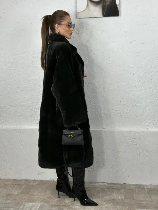 Кимоно норка мех NAFA английский воротник - темный изумруд