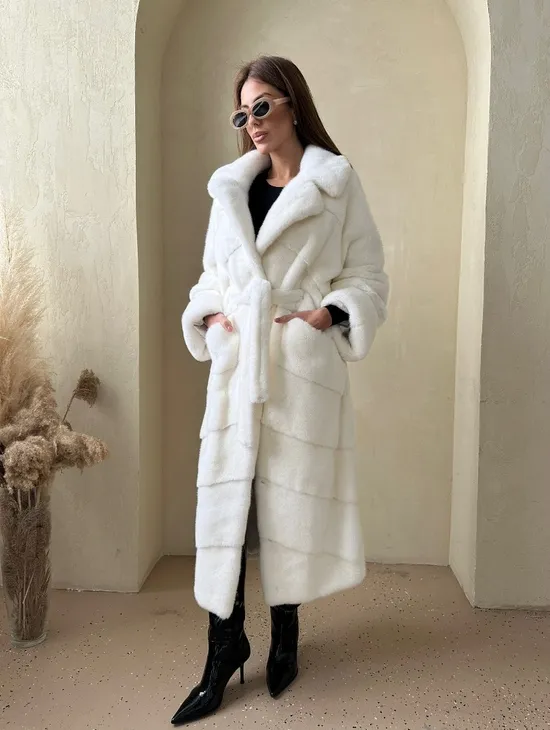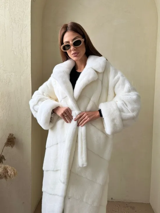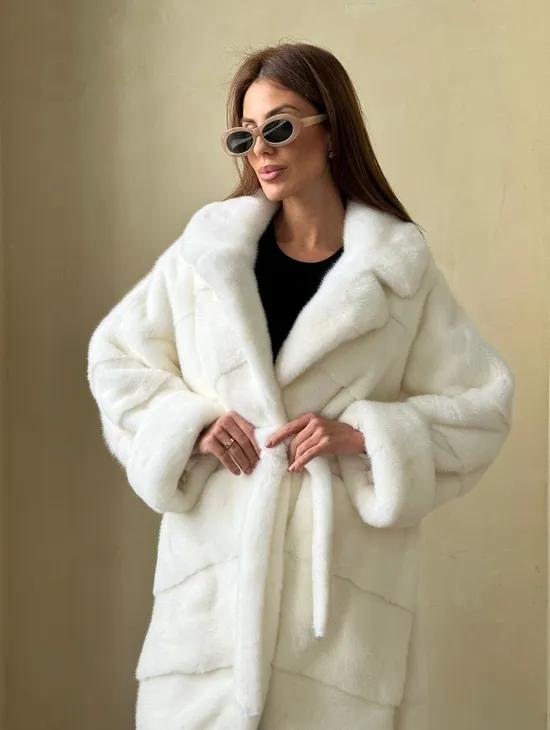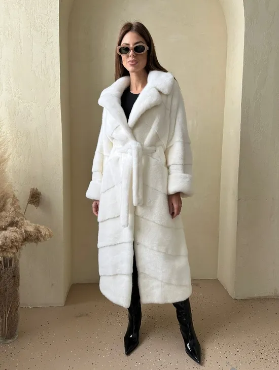 Норка NAFA люкс кимоно паркет английский воротник под пояс - цвет белый