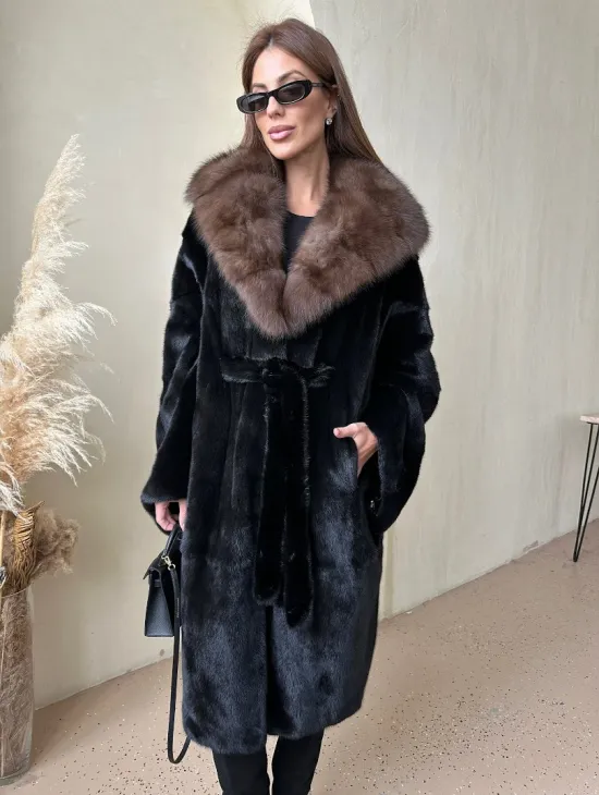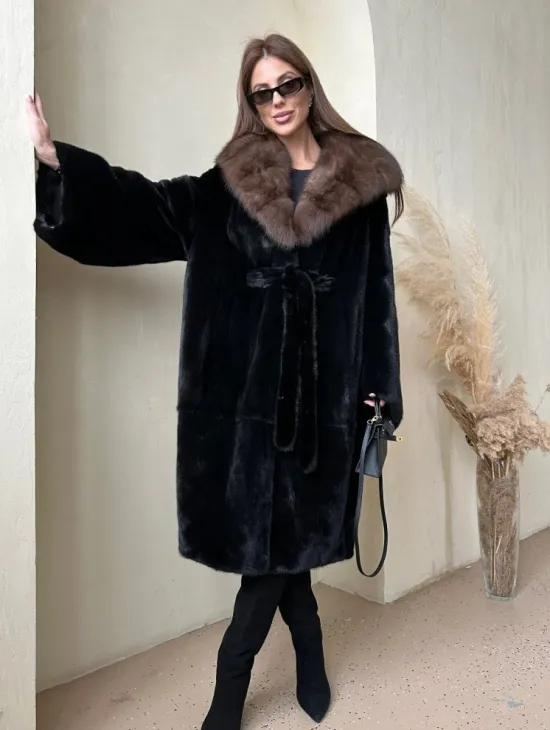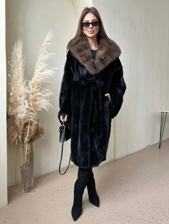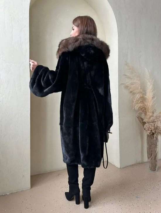 Норка BLACKGLAMA кимоно с капюшоном куница