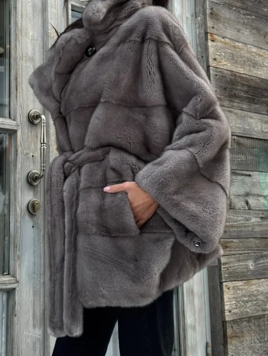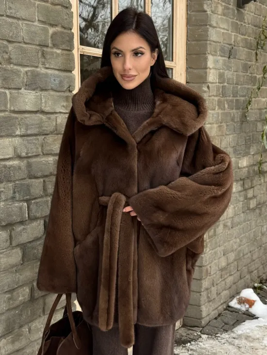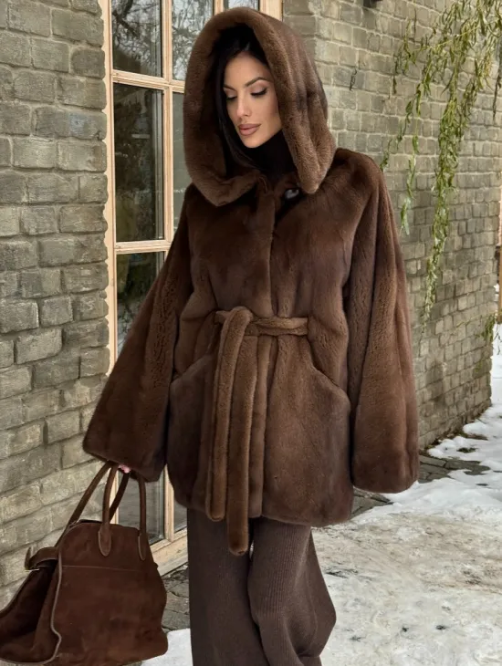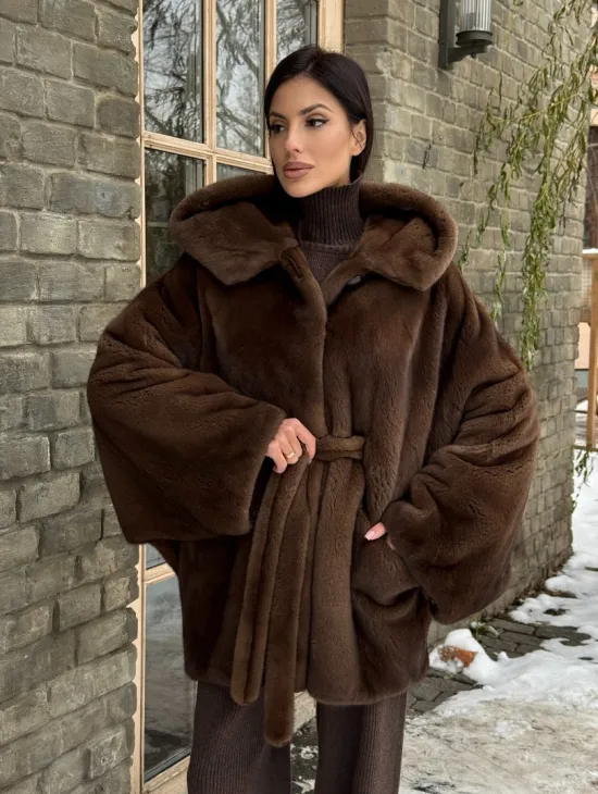 Норковые шубы летучая мышь с капюшоном