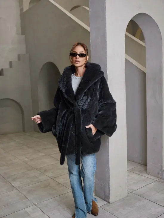 Норка графит роспуск с капюшоном летучая мышь