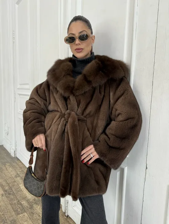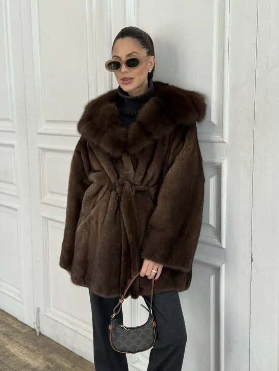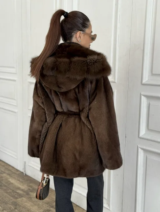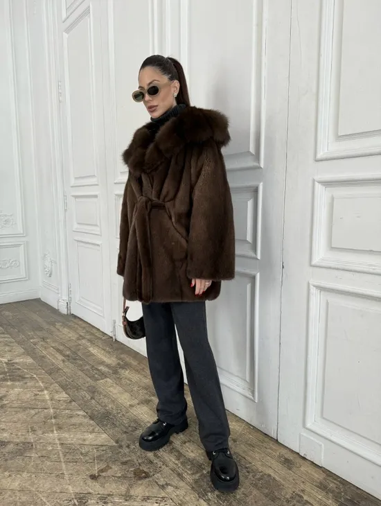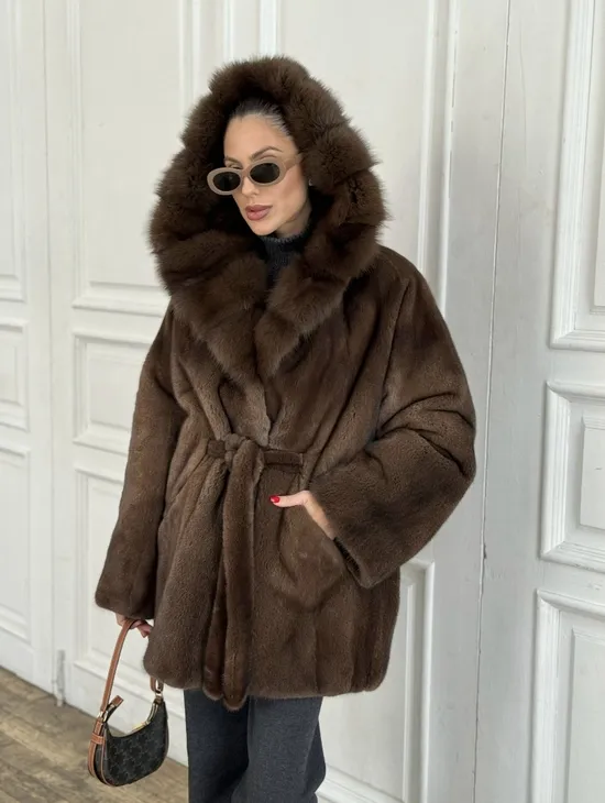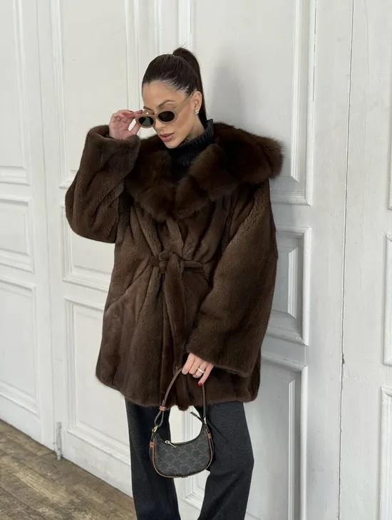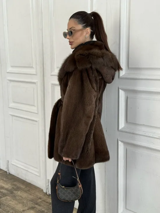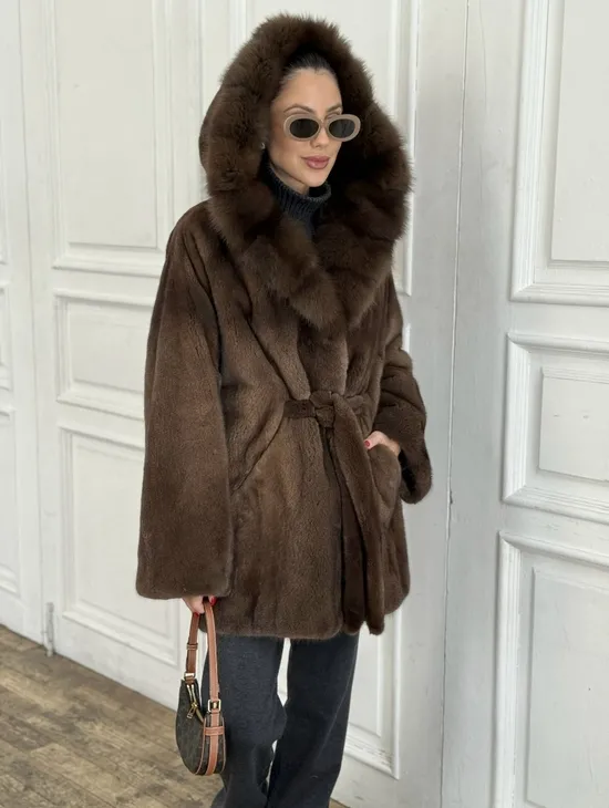 Норка летучая мышь роспуск с капюшоном куница - цвет орех